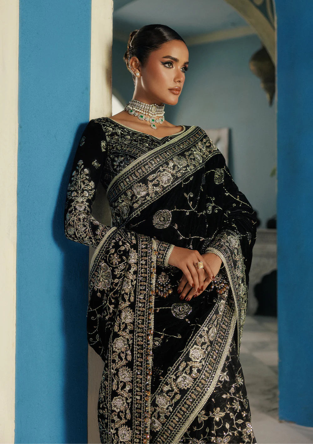 • Embroidered Velvet Saree Pallu