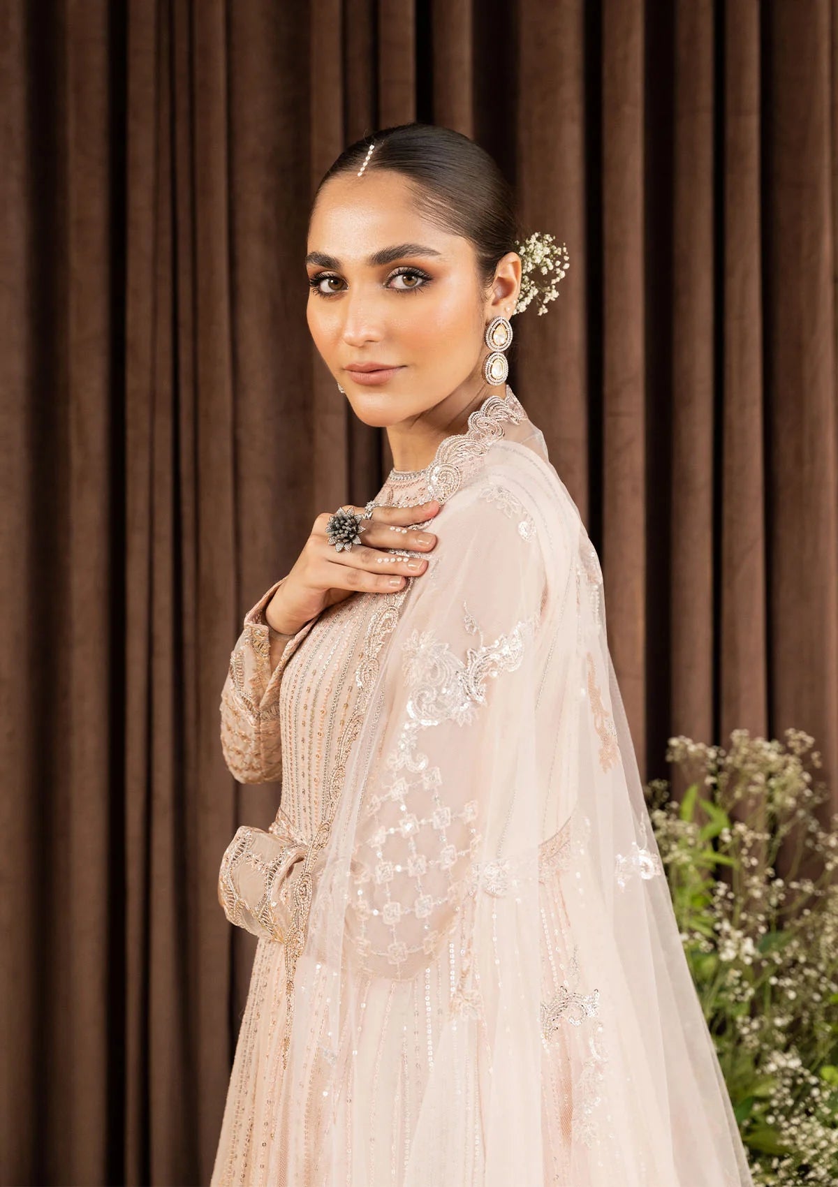 • Embroidered Organza Neckline Finishing