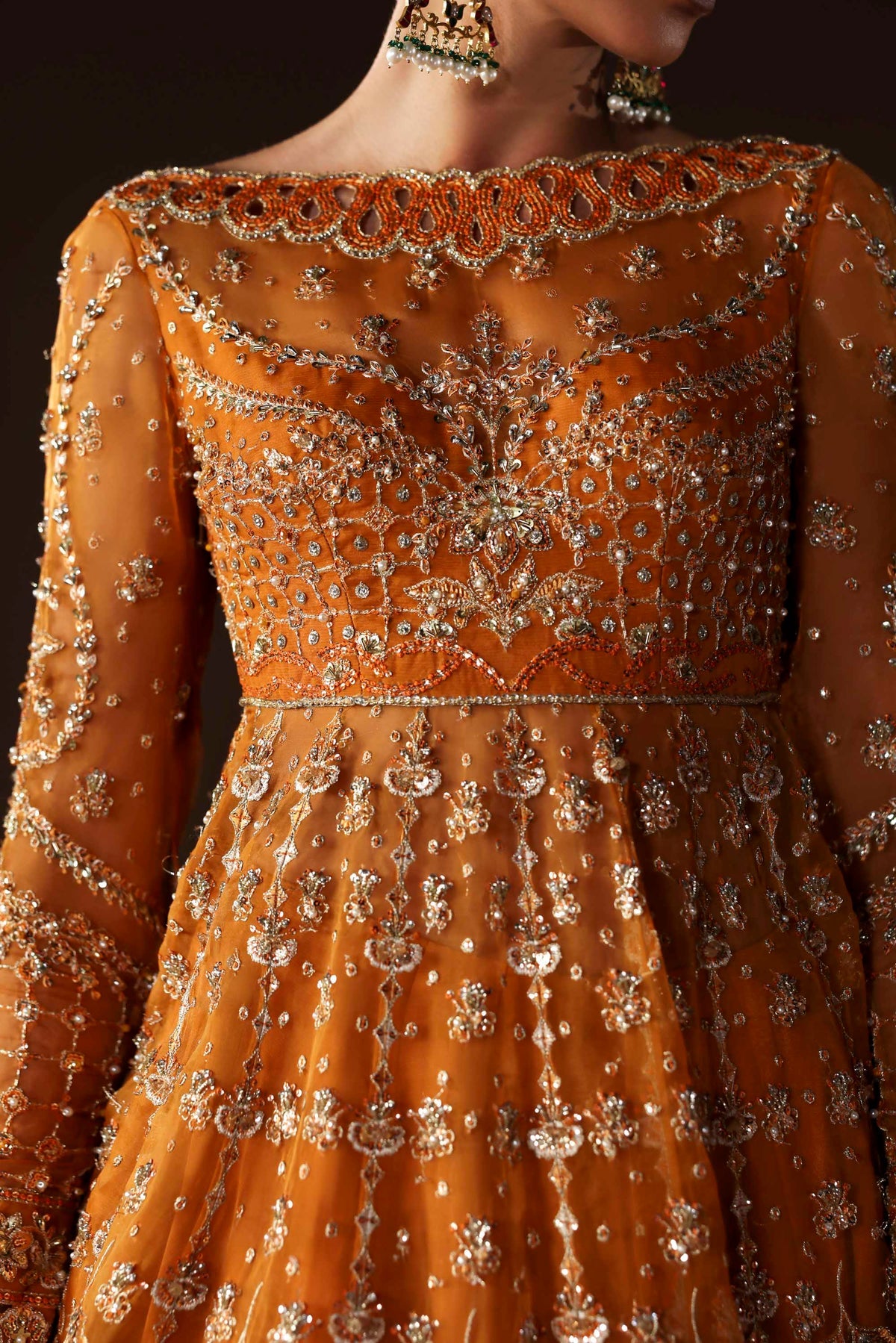 - Organza Embroidered Hand-Embellished Neckline – 1 piece