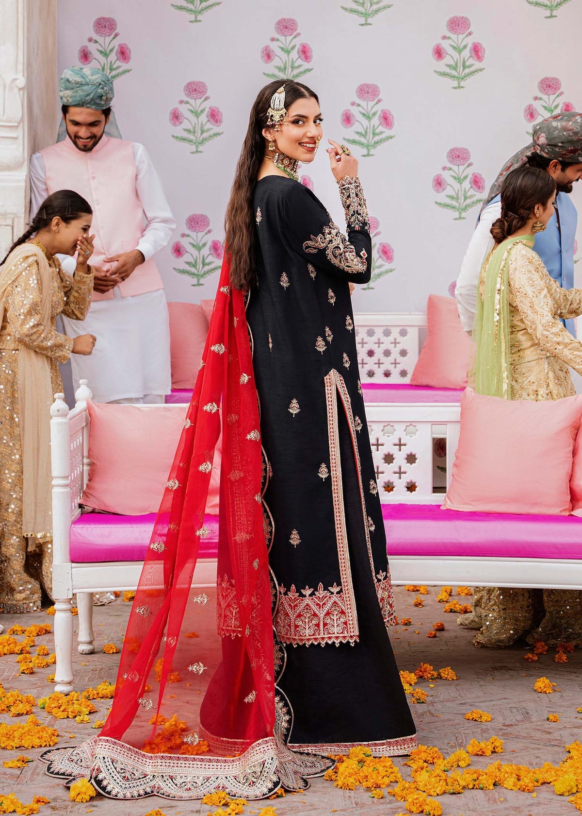 - Organza Embroidered Dupatta 4-Side Border - 7.5 yards