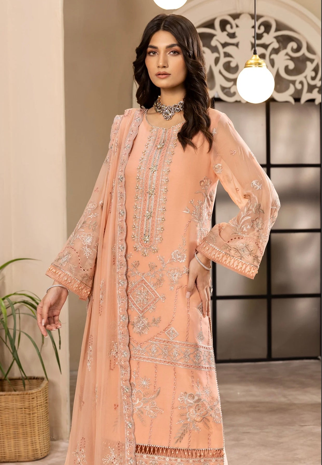 Embroidered Chiffon Kali