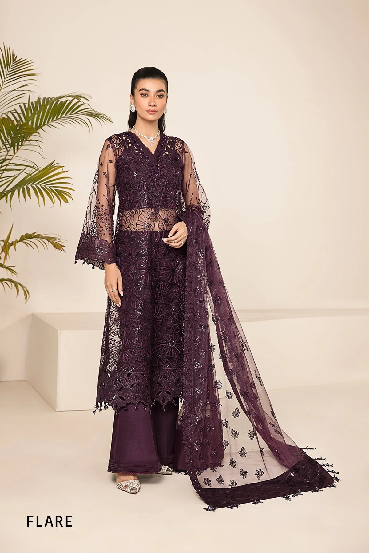 Embroidered Net Dupatta Dyed Russian Trouser