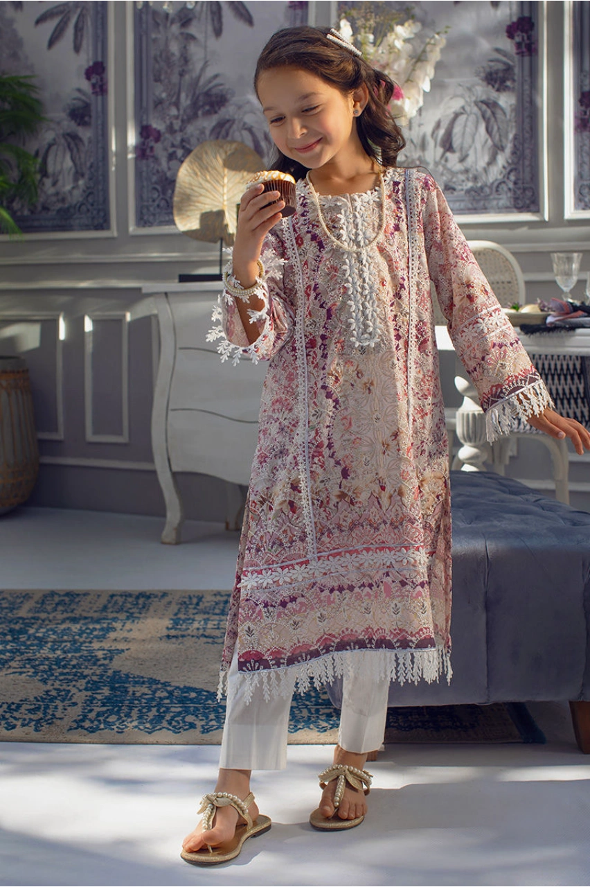 A classic schiffli white is epitome of grace and elegance. This botanical jewel tone print is adding the right amount of color. Paired with AJs signature Schiffli a wardrobe must have due to its versatility and longevity. Completed with solid pants