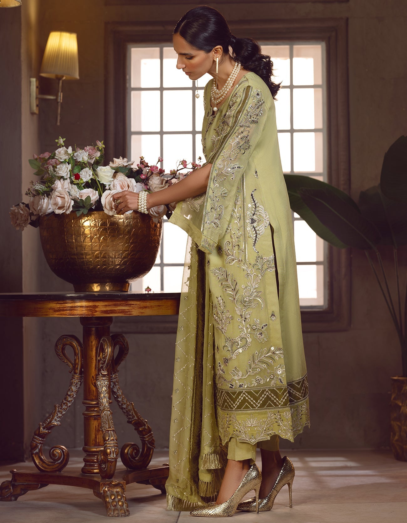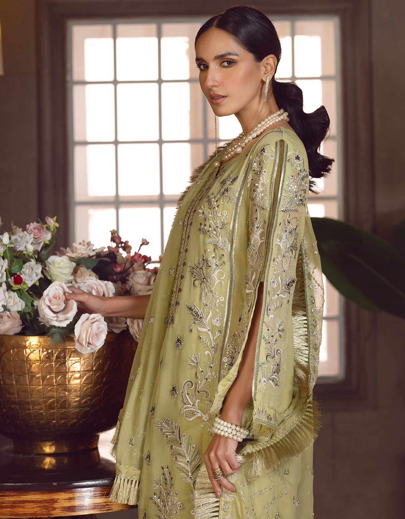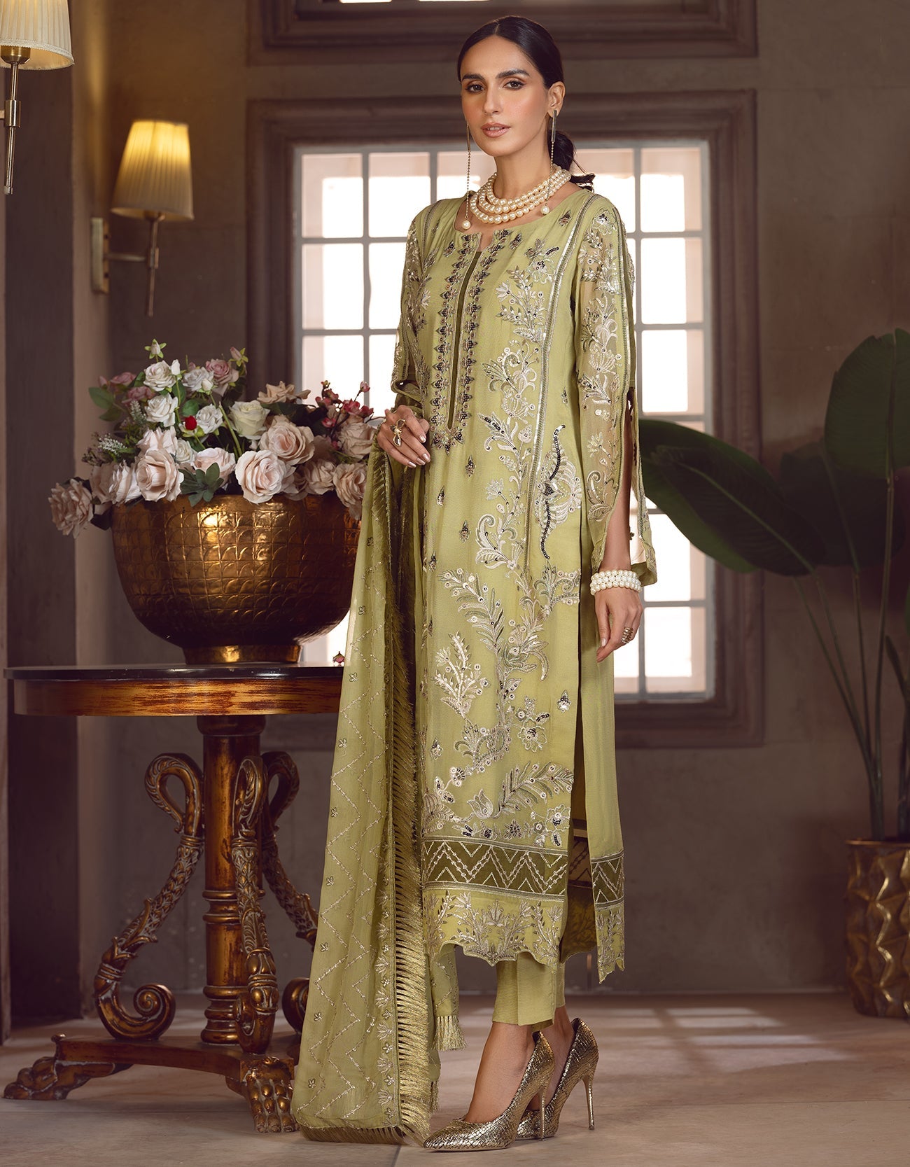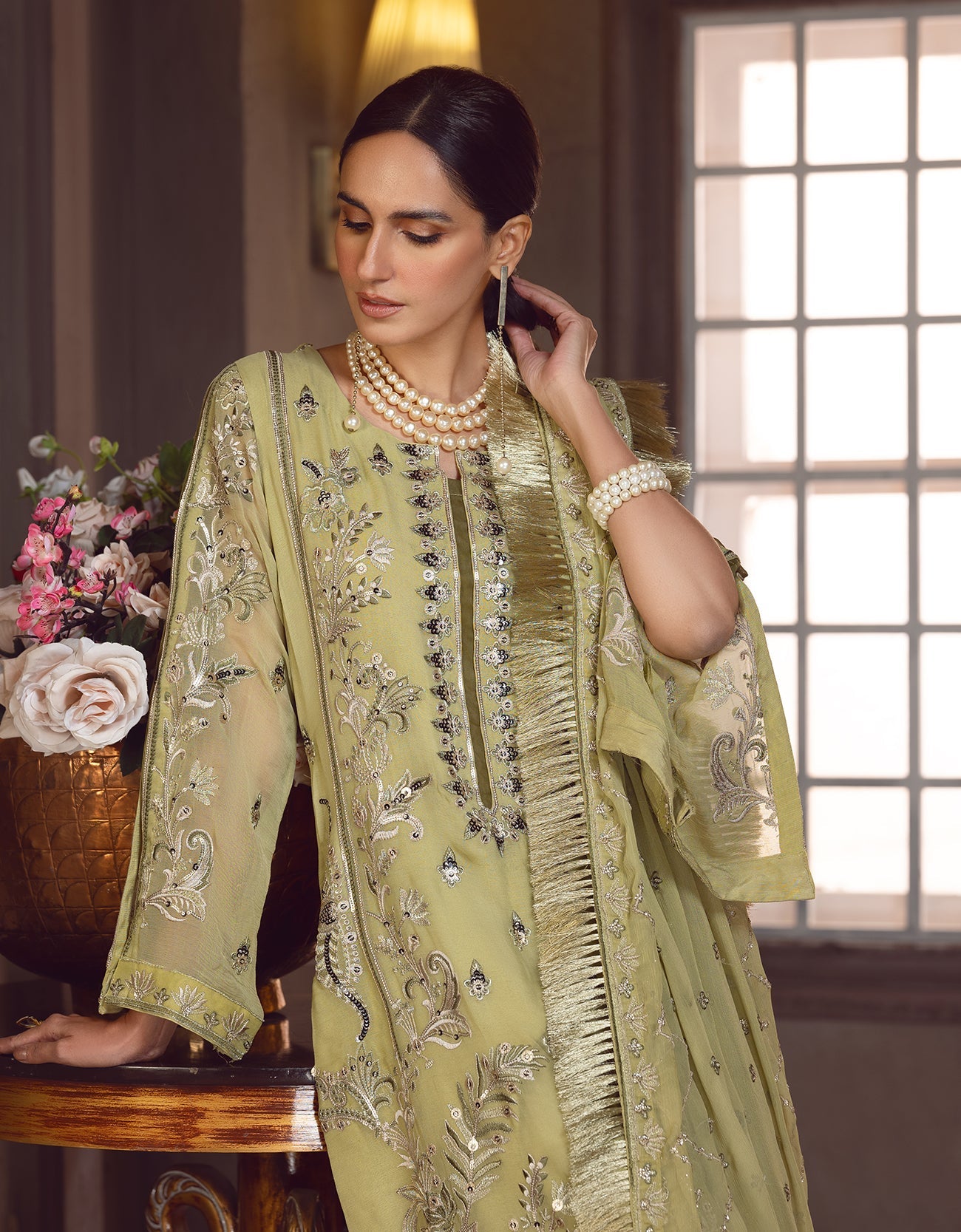Chiffon Embroidered Sleeves with Multi Sequence Work.