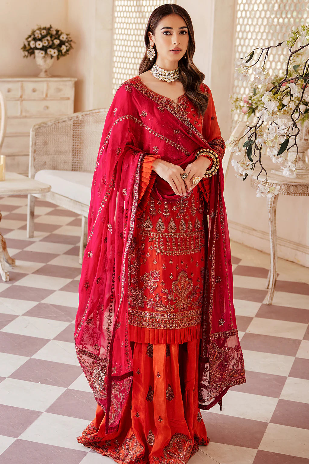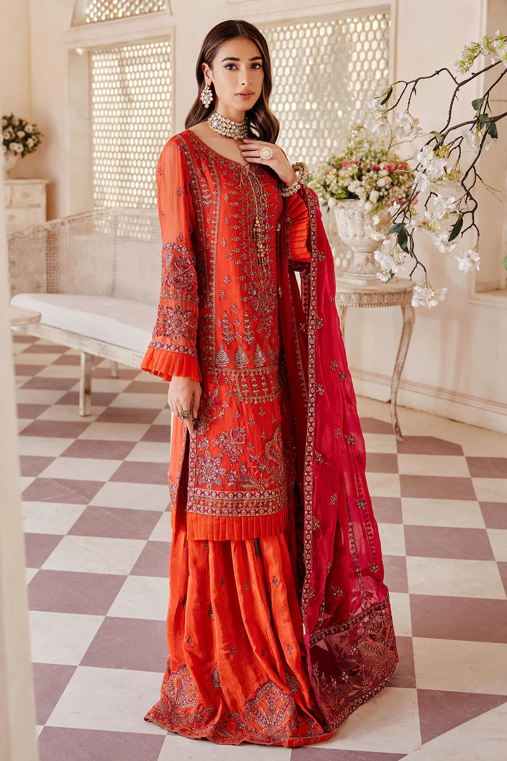 Chiffon Embroidered dupatta.