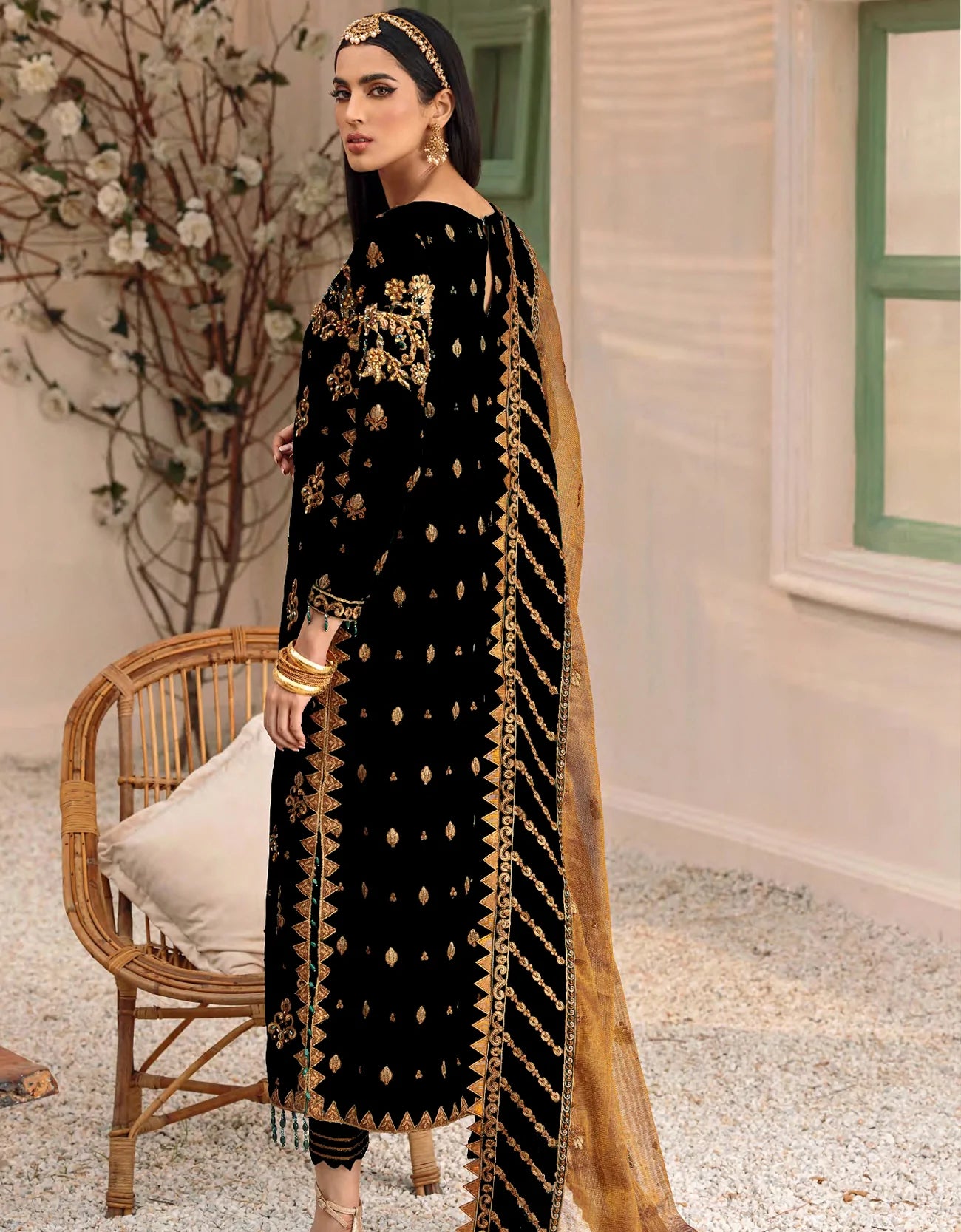 Velvet Embroidered Back with sequins work.