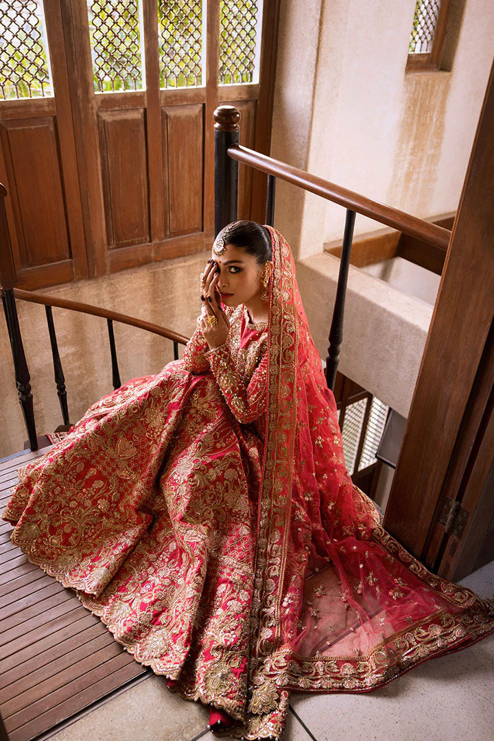 A majestic attire curated with intricate thread work adorned with some heavy sparkling crystals followed by delicate gold embellishments making it your next festive pick for the wedding season.