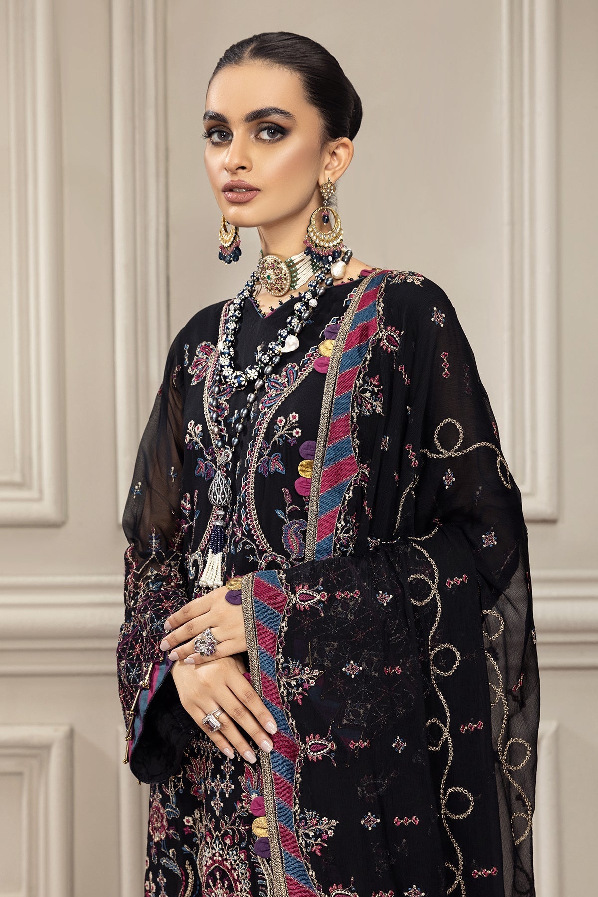 Embroidered chiffon front & back border