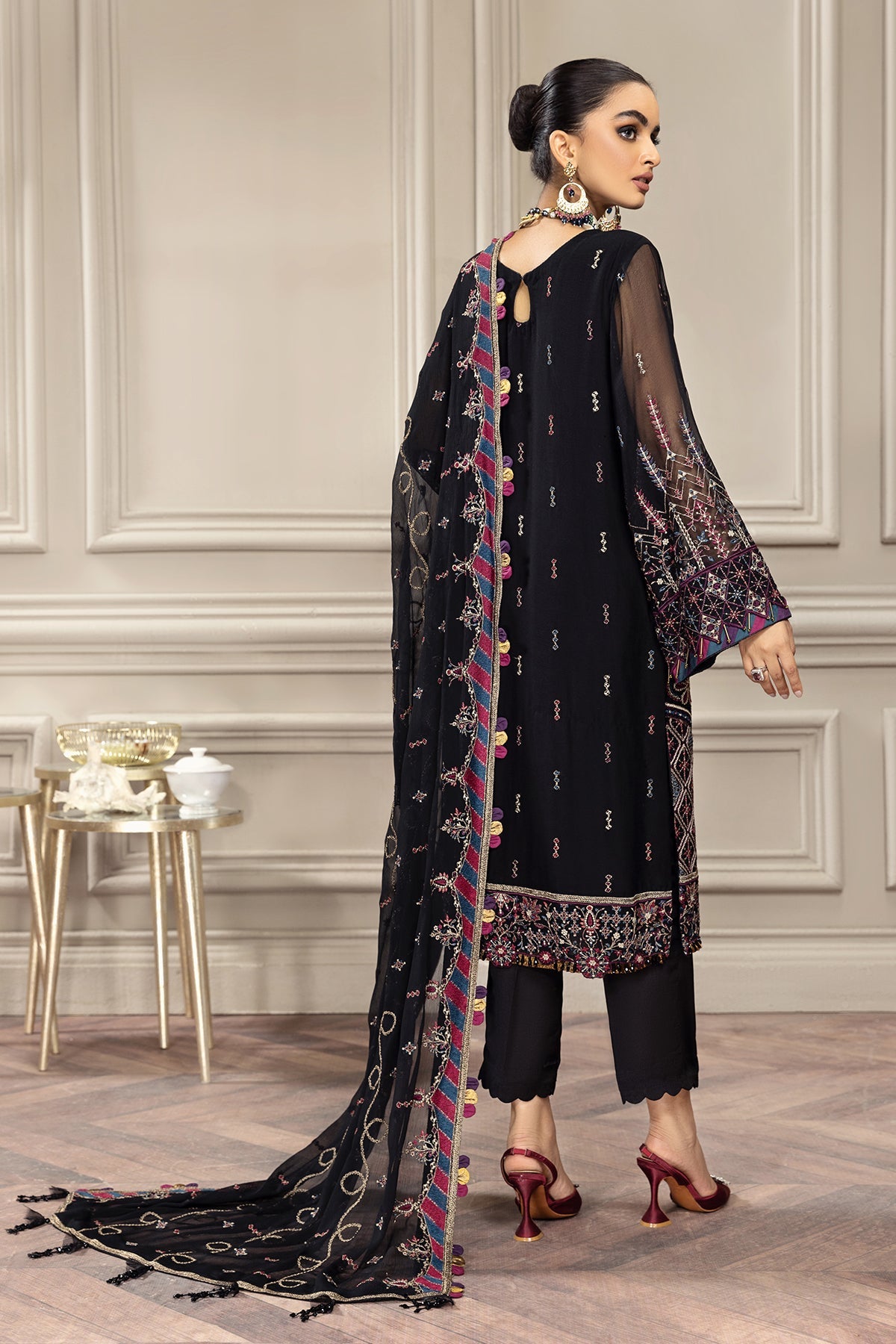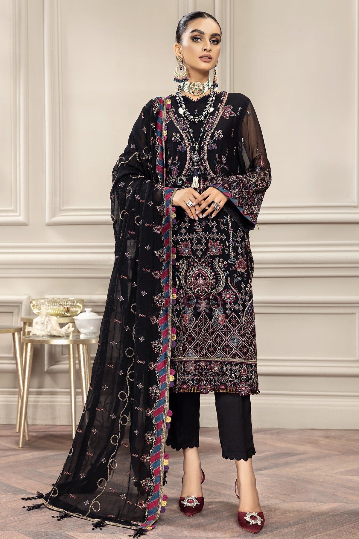 Embroidered chiffon dupatta