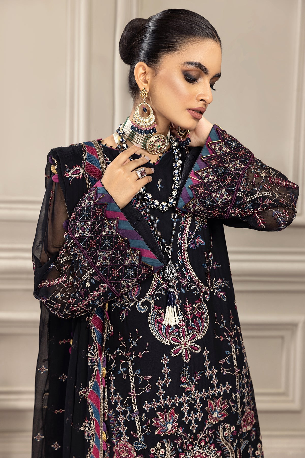 Embroidered chiffon sleeves