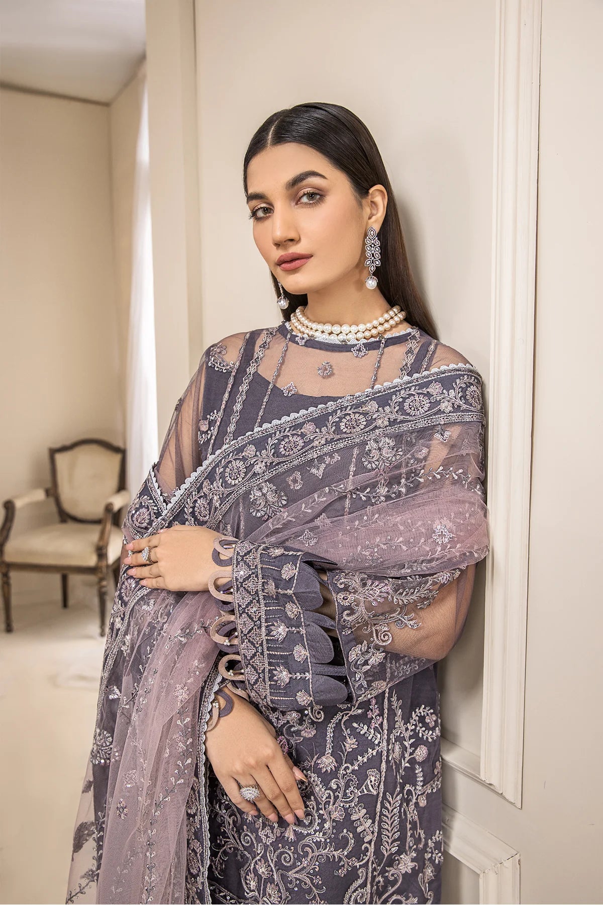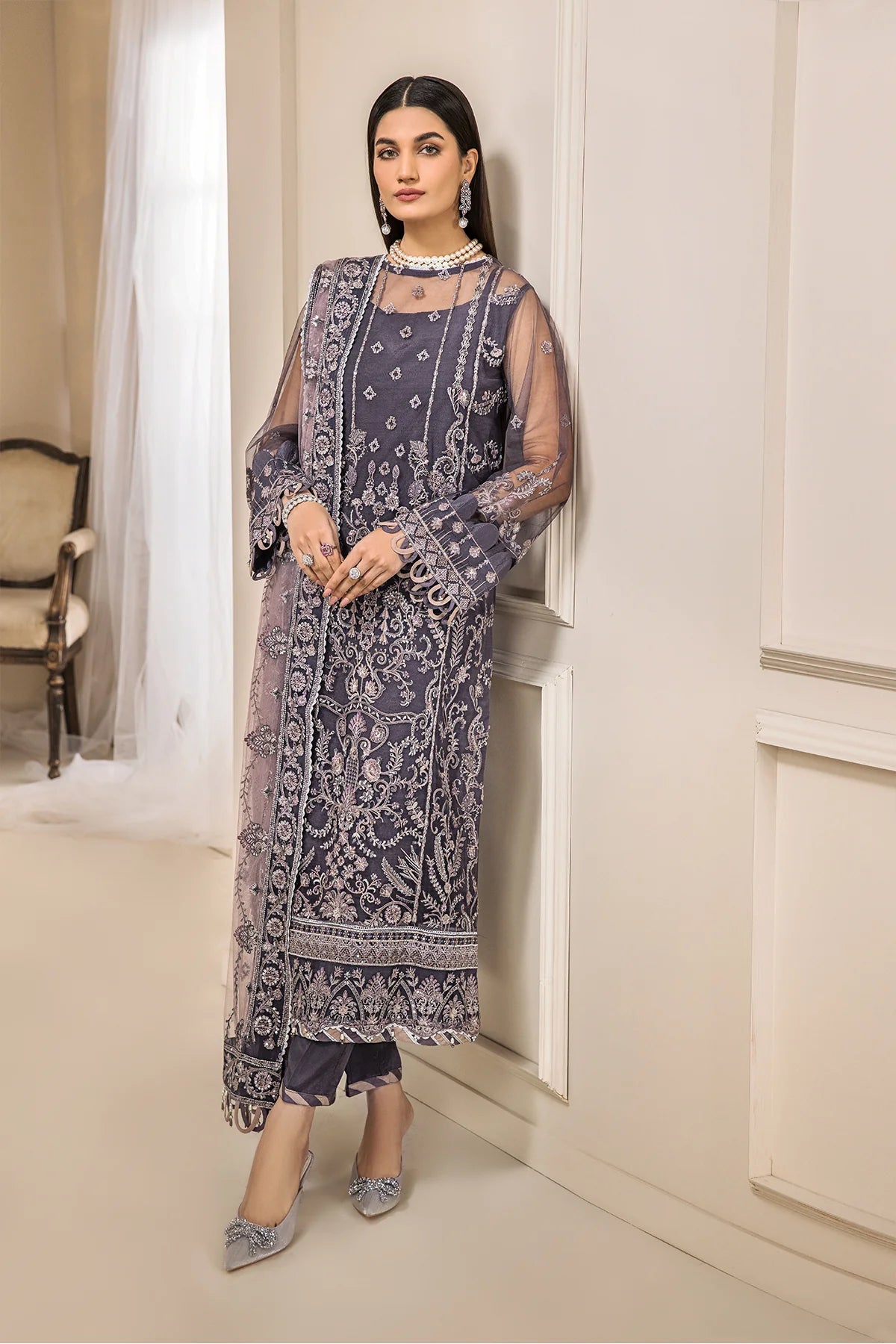 Embroidered Net Front