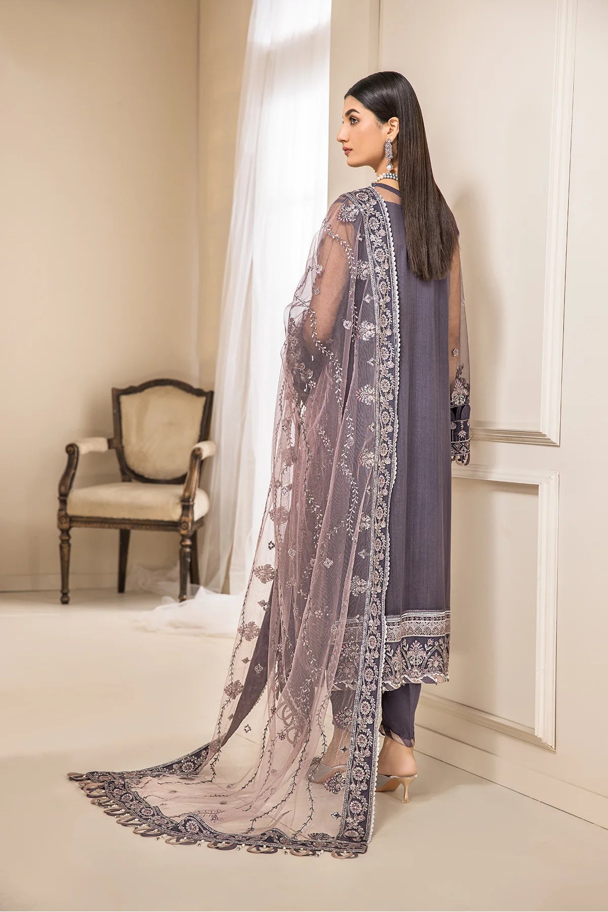 Embroidered Net dupatta border (2.5 yards)