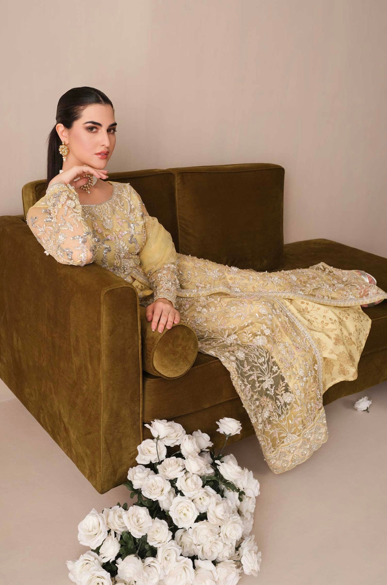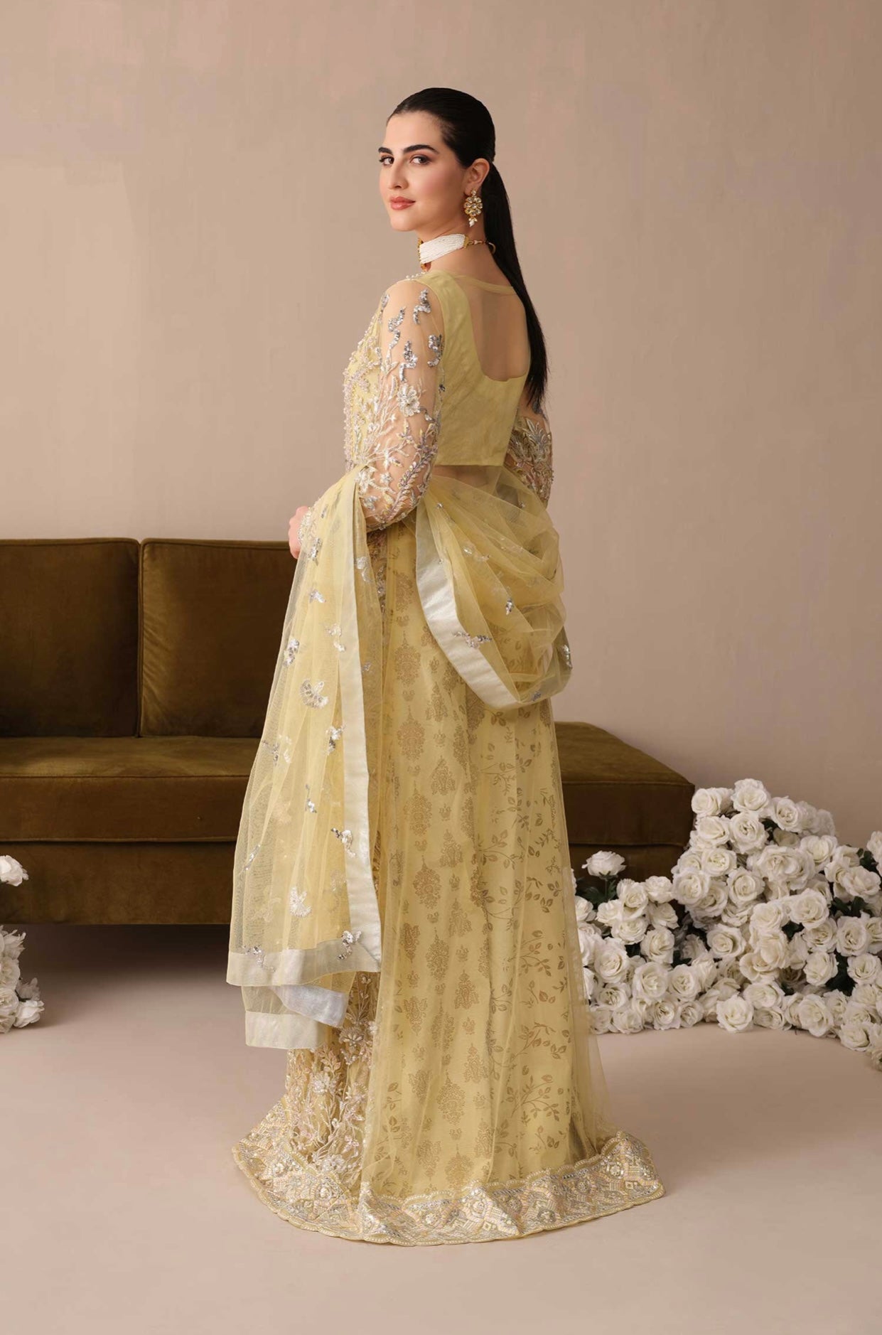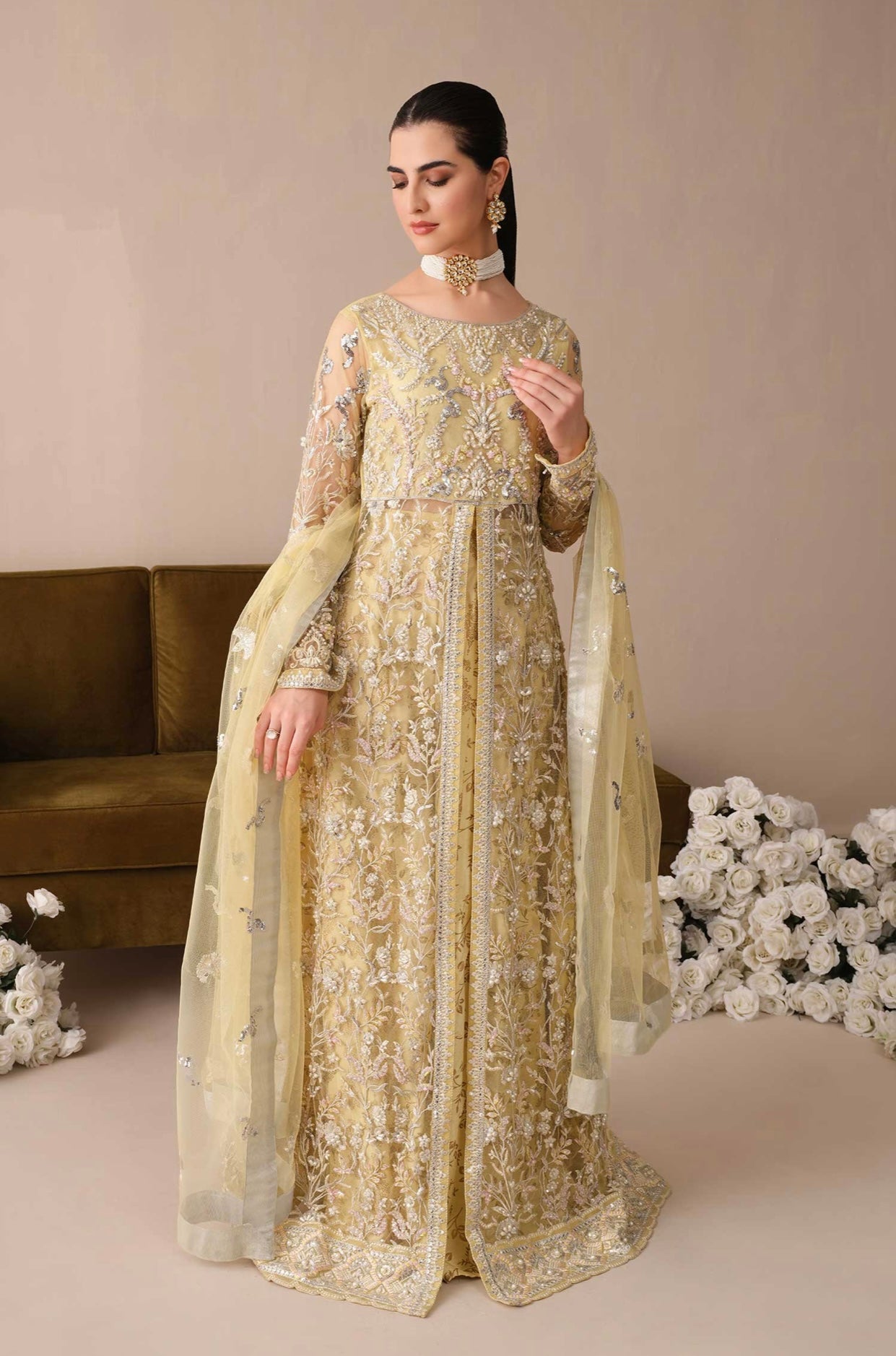 Embroidered handmade net front sleeves & bodice