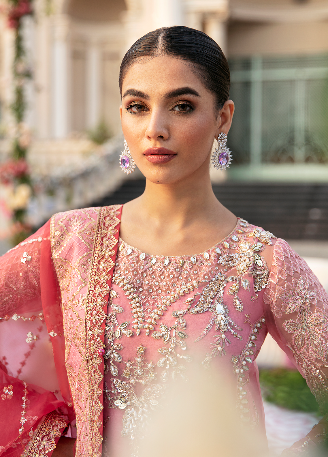 A manifestation of timeless grace and modern sophistication. ’Aafiya’ in light pink is not just an outfit; it’s an embodiment of elegance and sophistication, inviting you to embrace the beauty of traditional craftsmanship with a contemporary twist. Make a statement at any occasion with this extraordinary ensemble that seamlessly fuses heritage and modernity.
