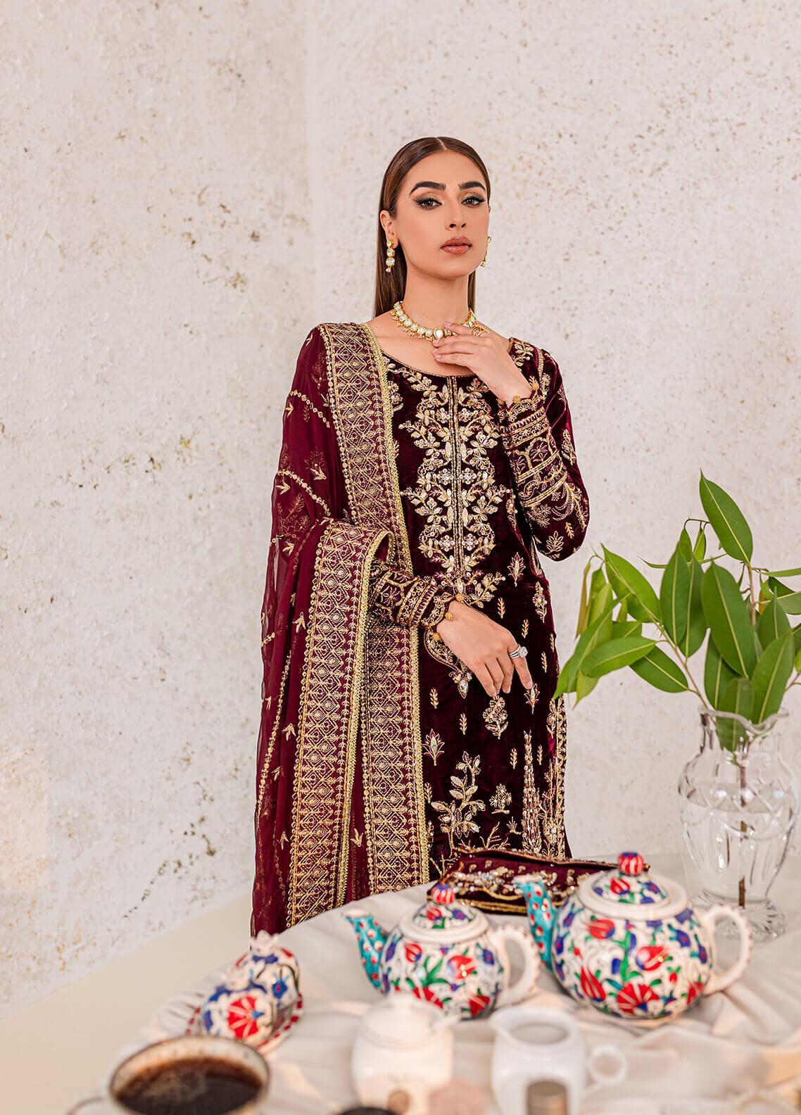 - Embroidered & sequined pure velvet sleeves