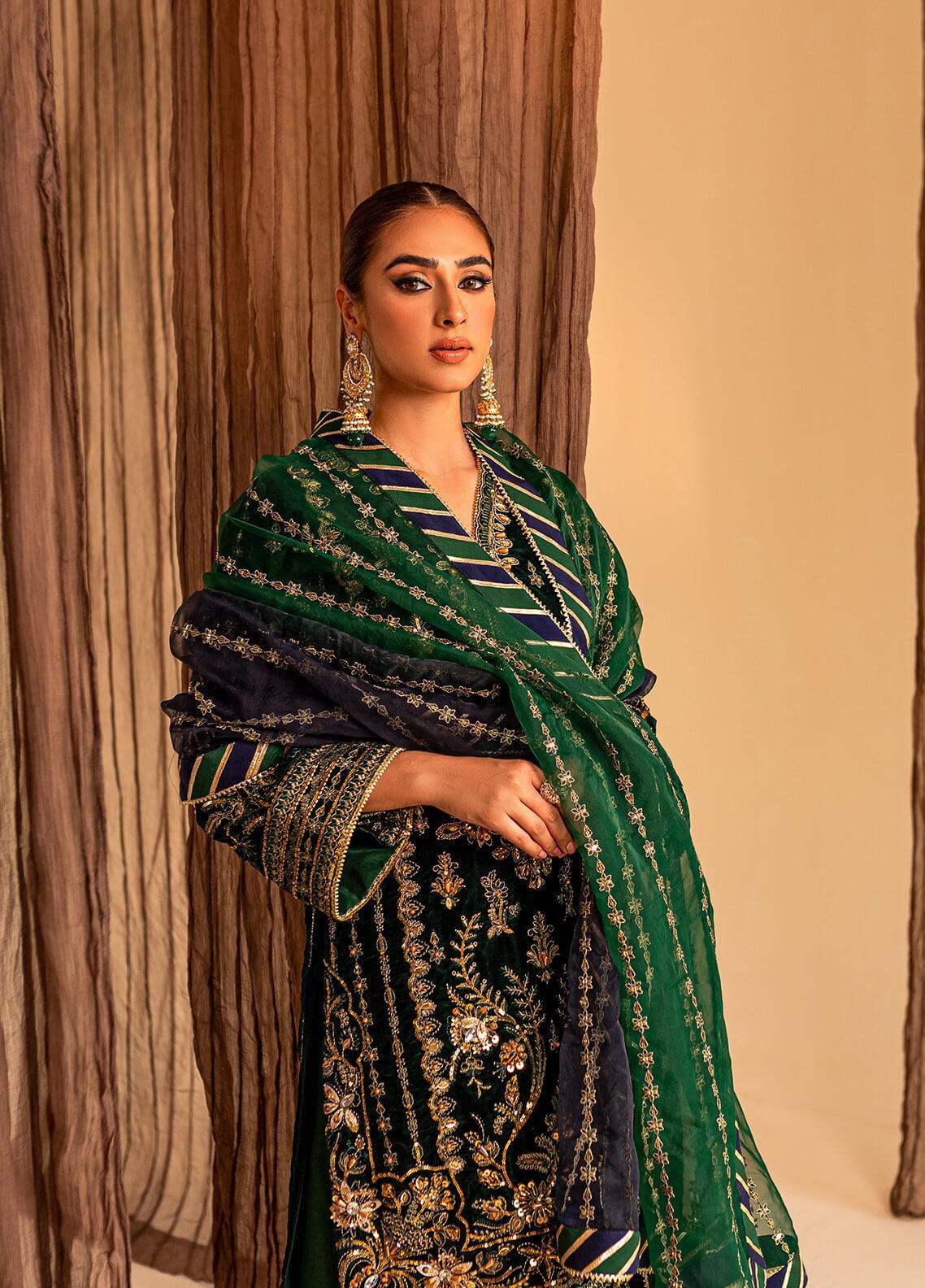 - Fully hand-worked, embroidered & sequined pure velvet front