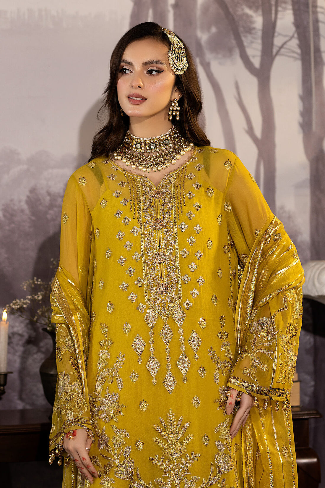 Embroidered zari organza for dupatta