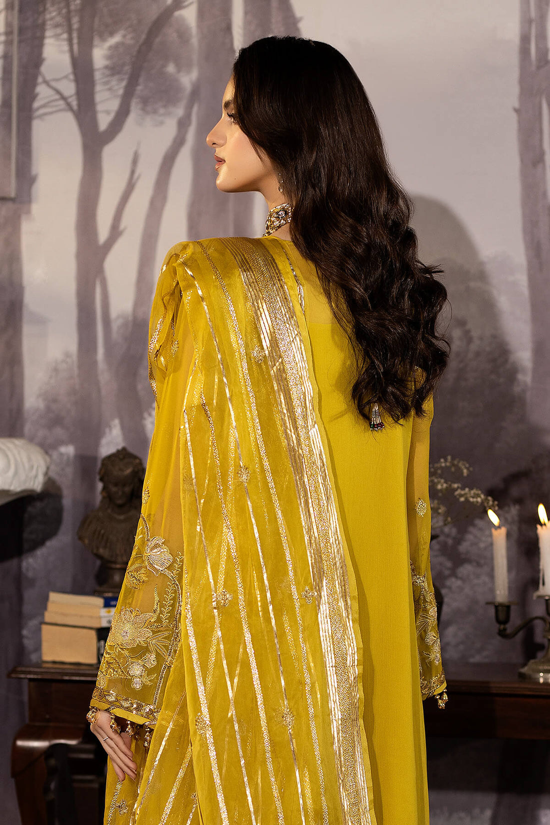 Embroidered organza for front & back border