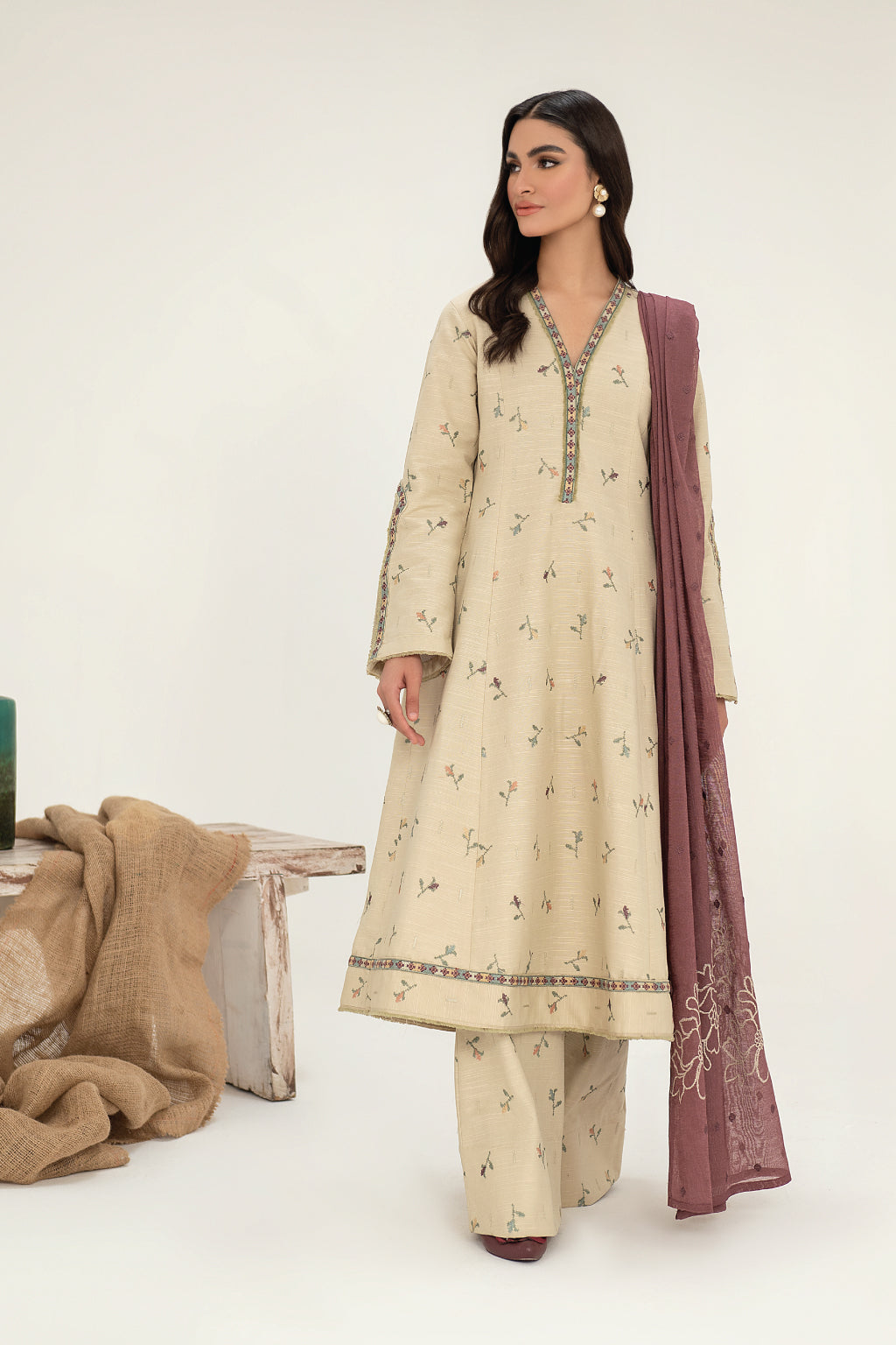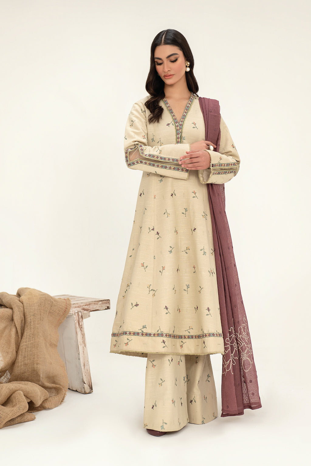 Trouser: Embroidered Slub Khaddar (2.5 y)