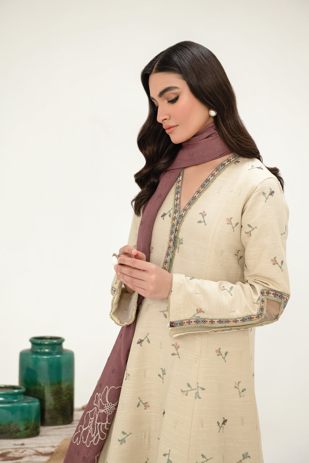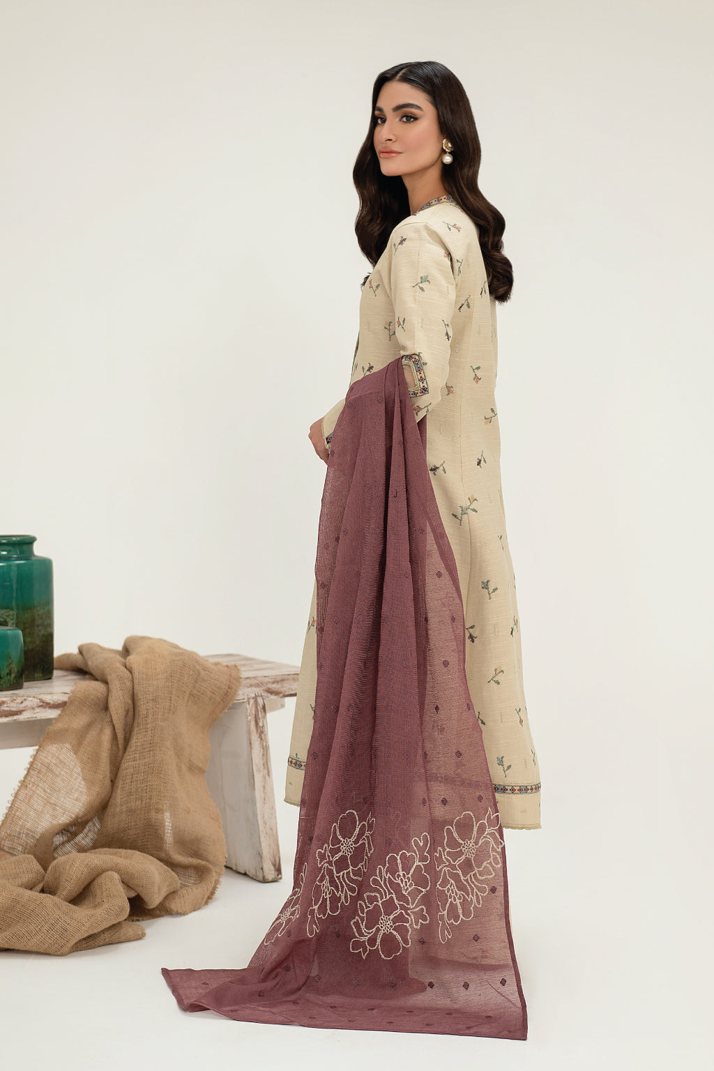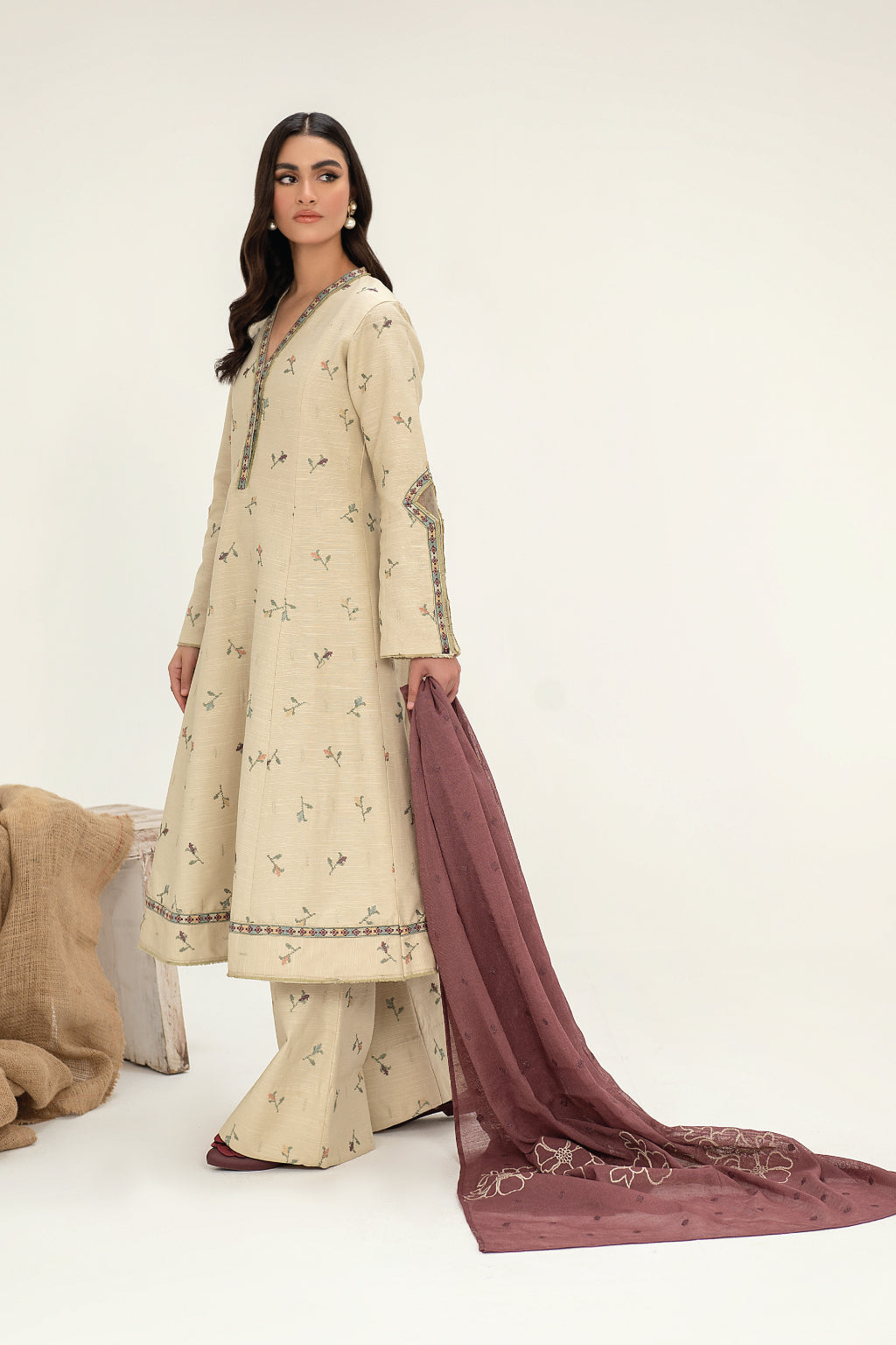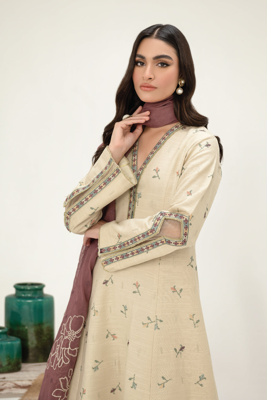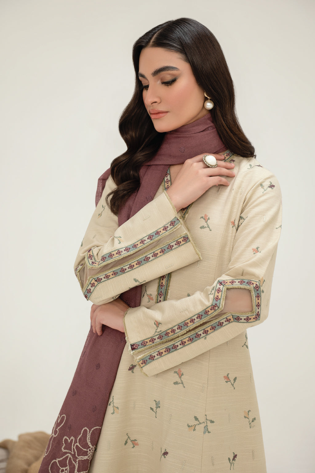 Frock Front, Back & Sleeves: Embroidered Slub Khaddar (3.5 Y)