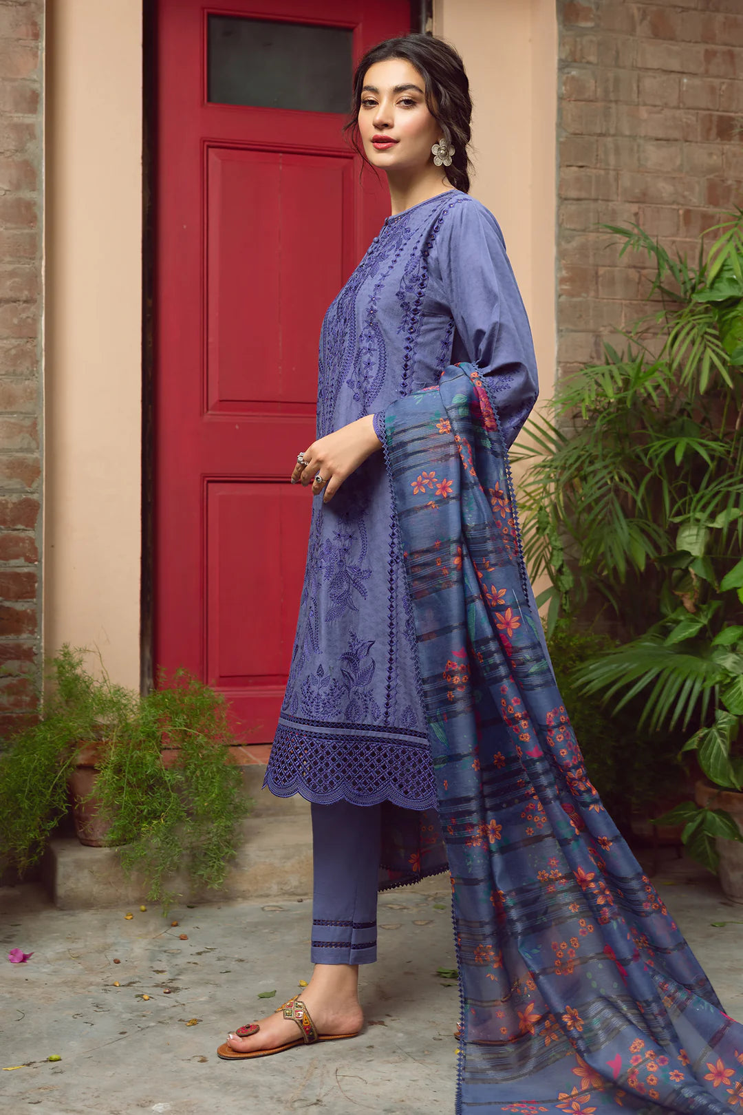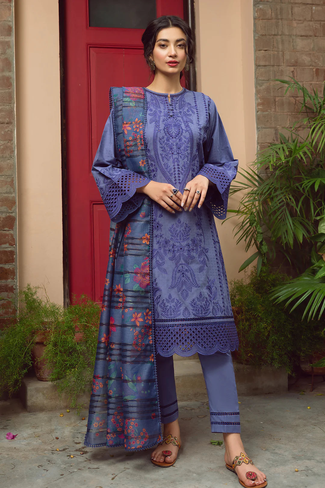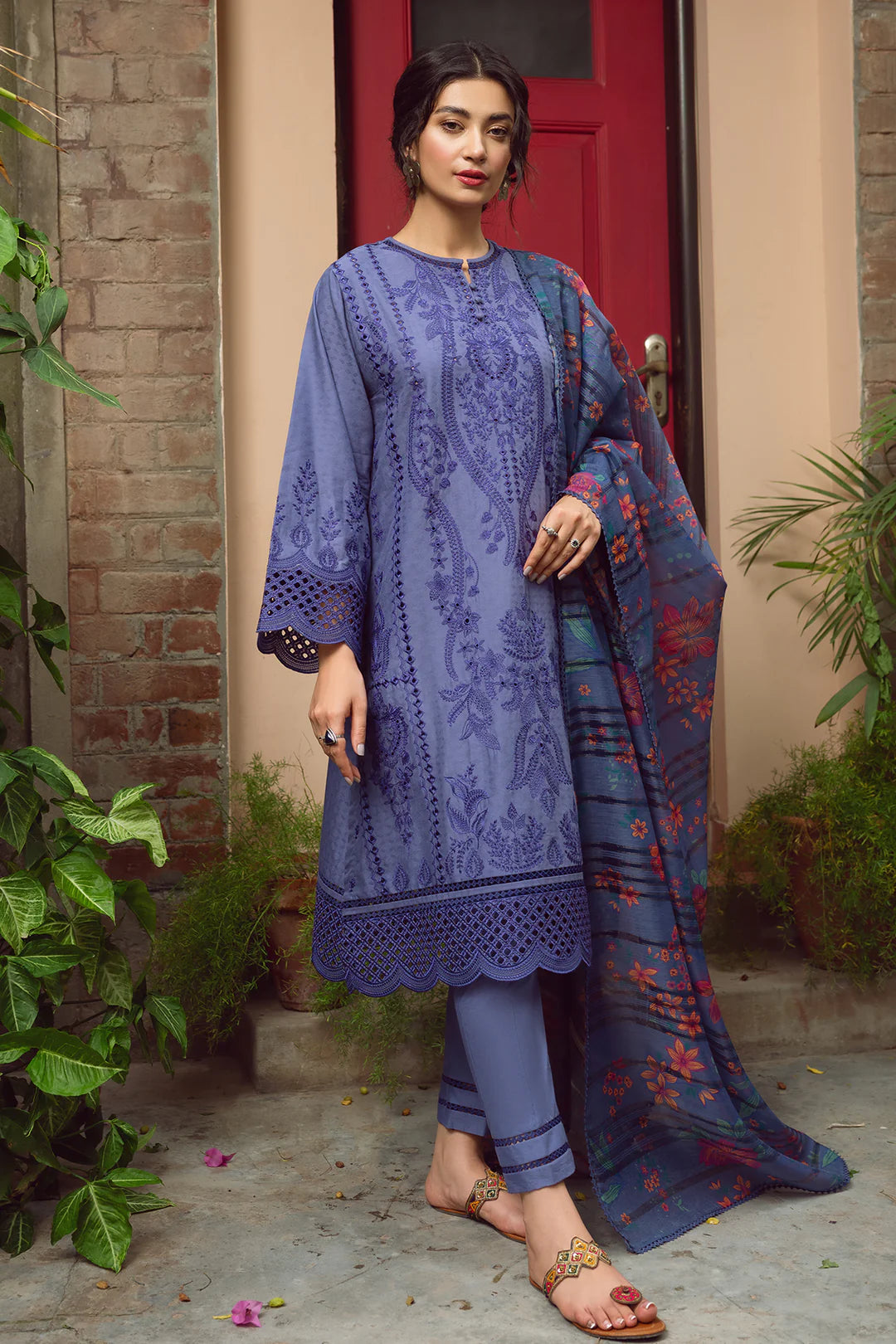 Embroidered Self Jacquard Lawn Front & Side Panels