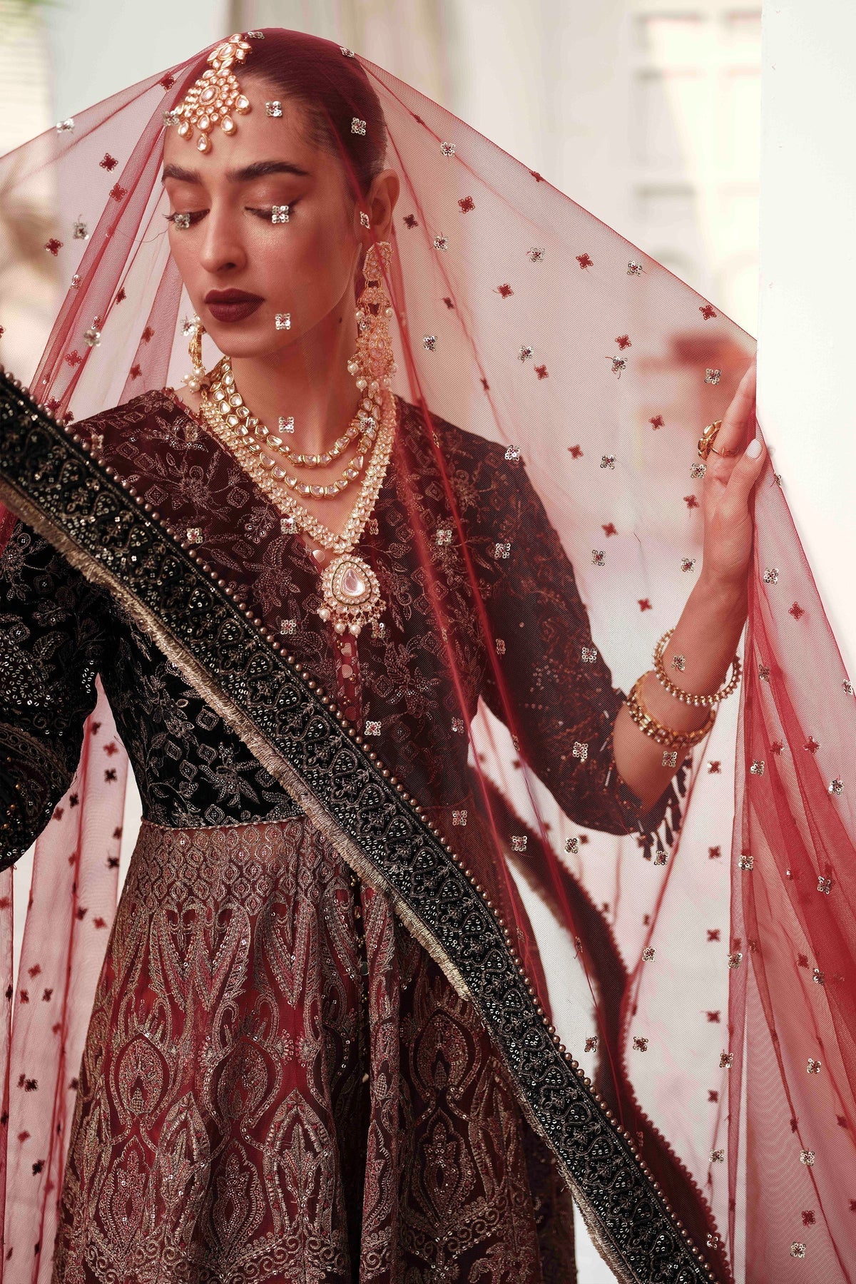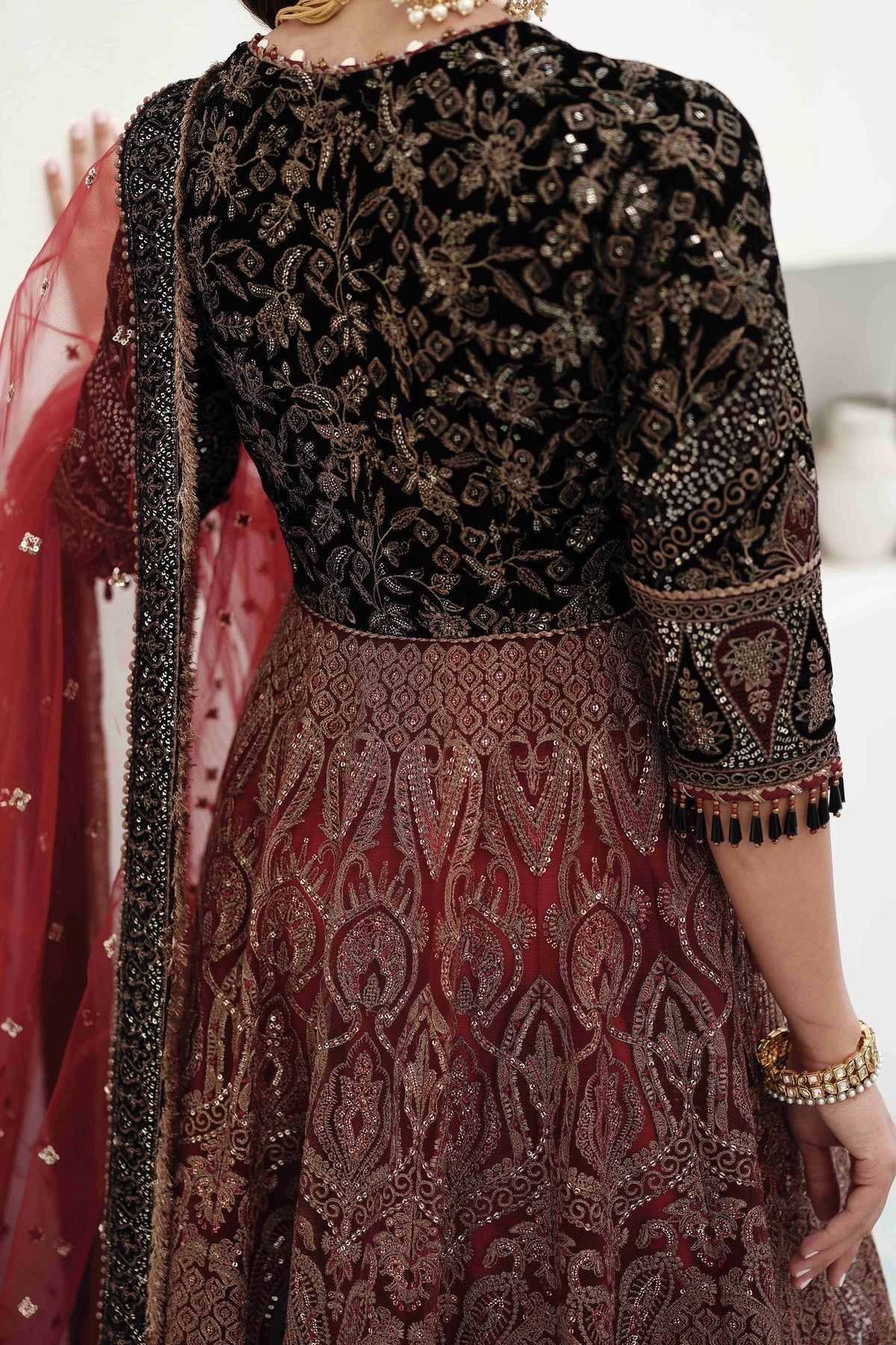 Embroidered Velvet Dupatta Borders