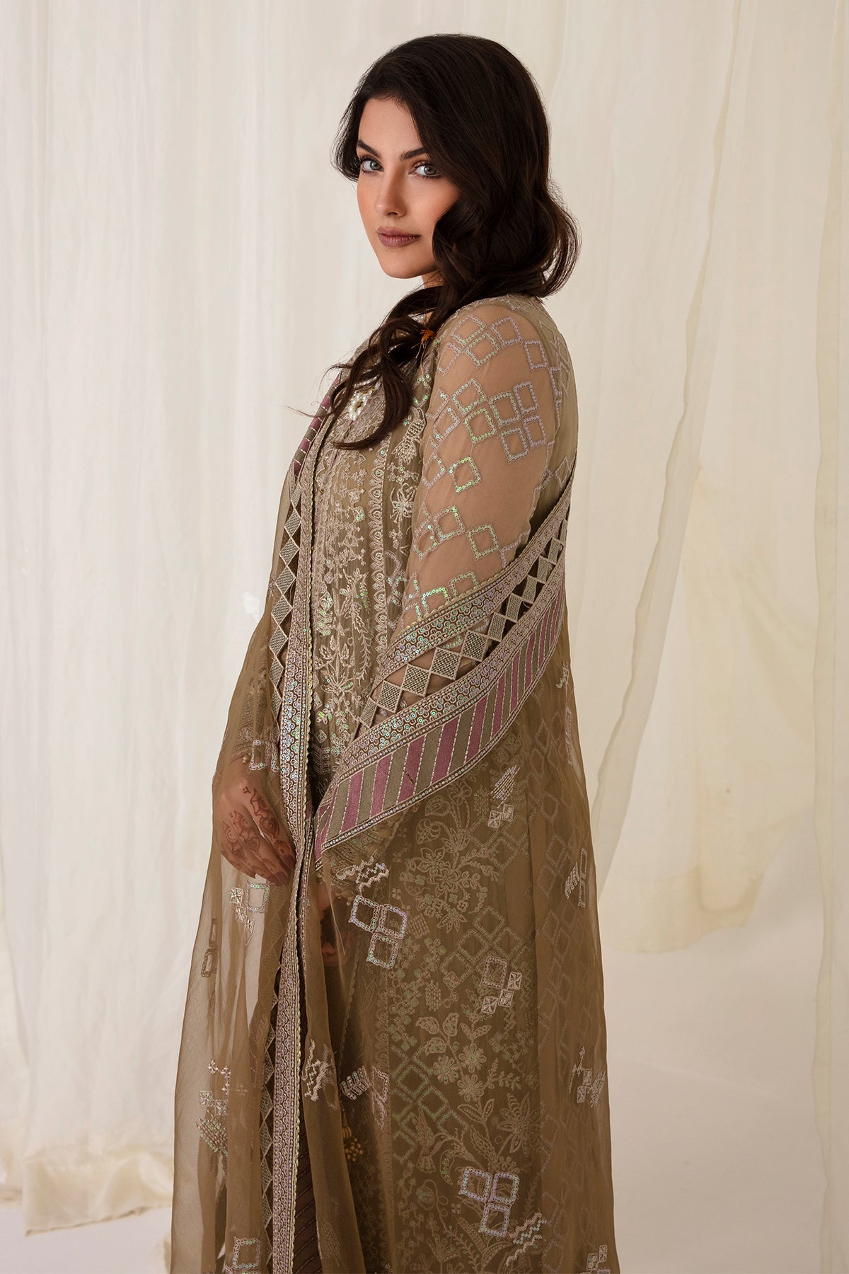 - Embroidered Chiffon Front Sleeves