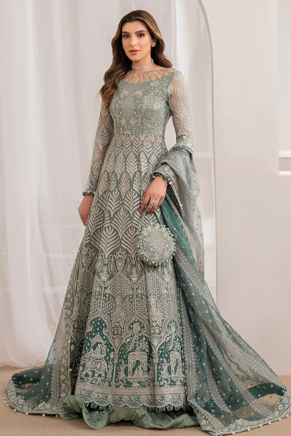 • Embroidered Chiffon Appliqued Front & Back Panels