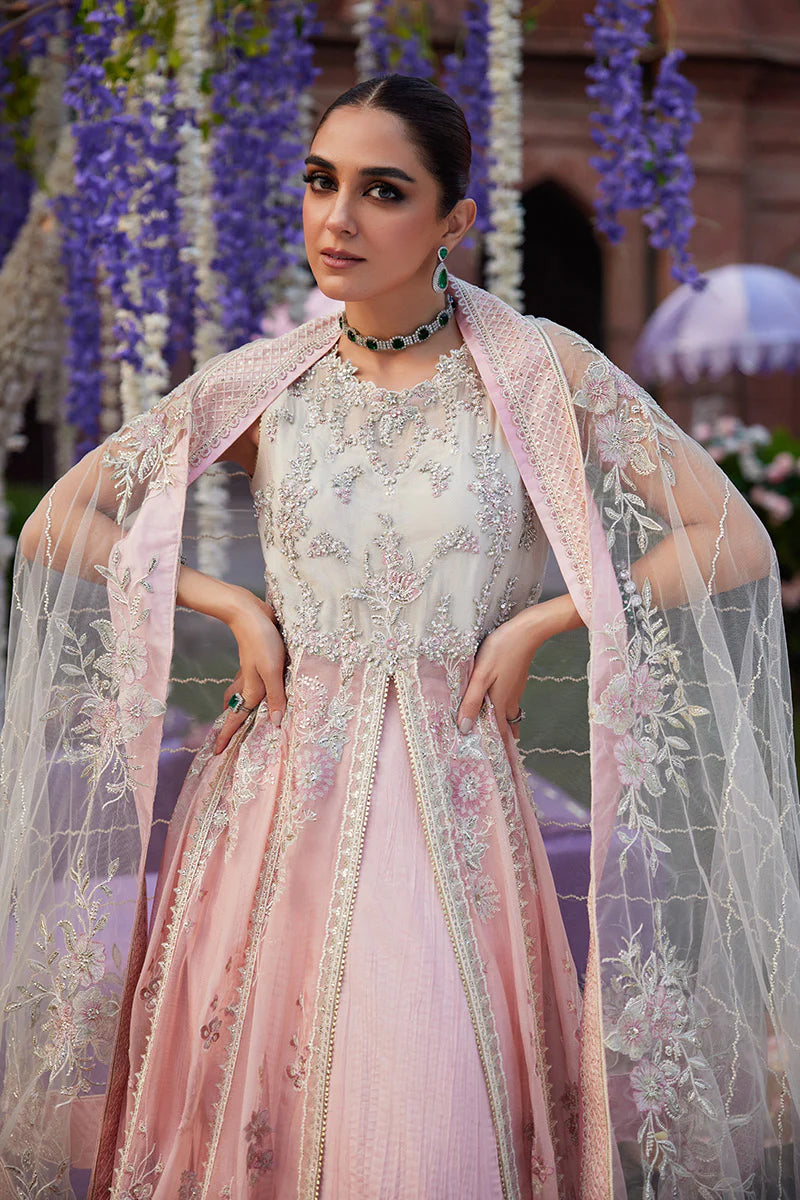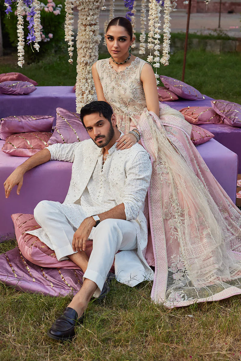 Our beautifully curated ensemble, Mishaal, unveils a symphony of meticulous craftsmanship, redefining luxury with its captivating allure in chiffon. The fusion of hand embellished and embroidered work, results in a harmonious blend of tradition and contemporary finesse. Mishaal invites you to revel in the splendor of hand-crafted beauty and enduring allure.
