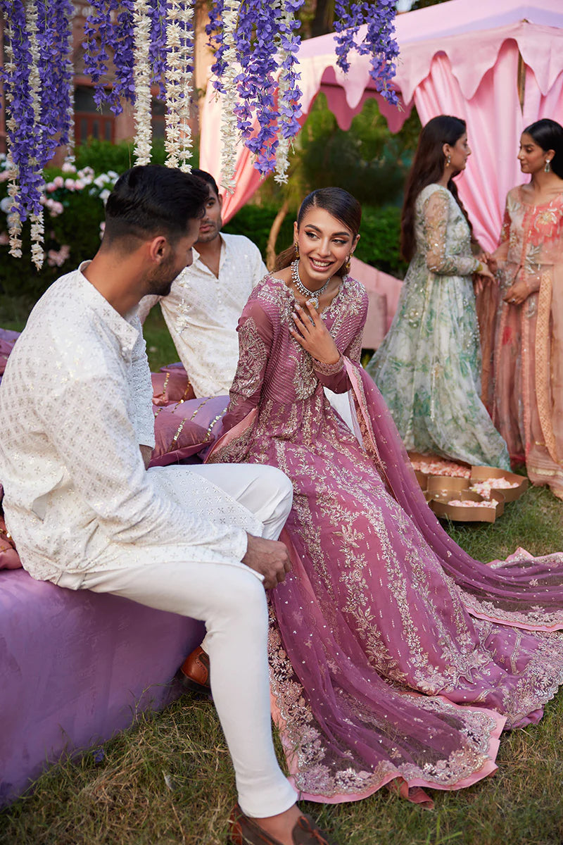 Distinctive elegance personified through our exquisite ensemble Hania in mauve. The hand-embellished and embroidered details on chiffon, coupled with the embroidered and sequinned borders, provide a canvas for personal expression. It exudes a timeless grace, making a statement that transcends fleeting trends.