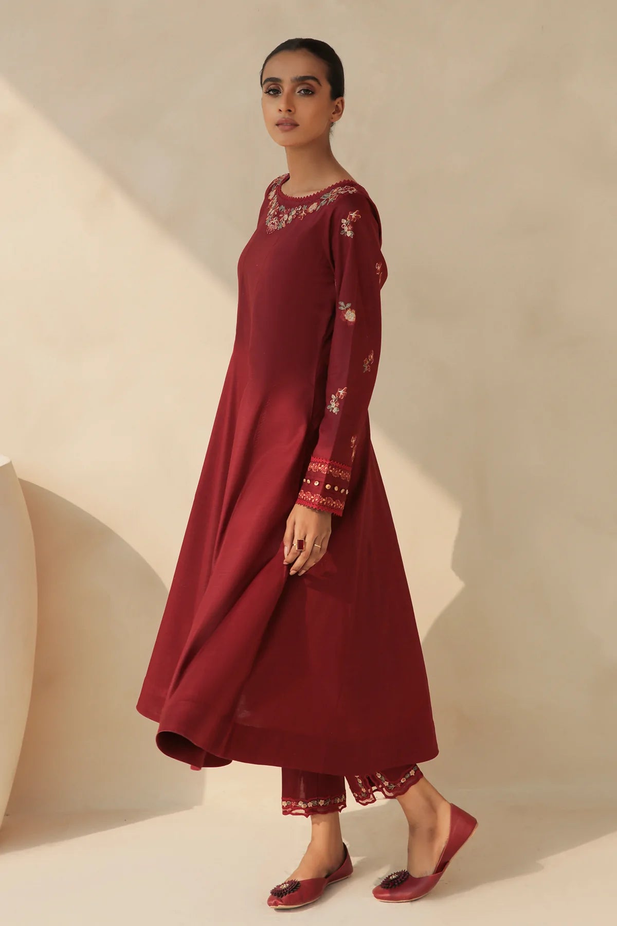 SHIRT: EMBROIDERED SLUB KHADDAR WITH EMBROIDERED FRONT, SLEEVES AND BACK PATCH