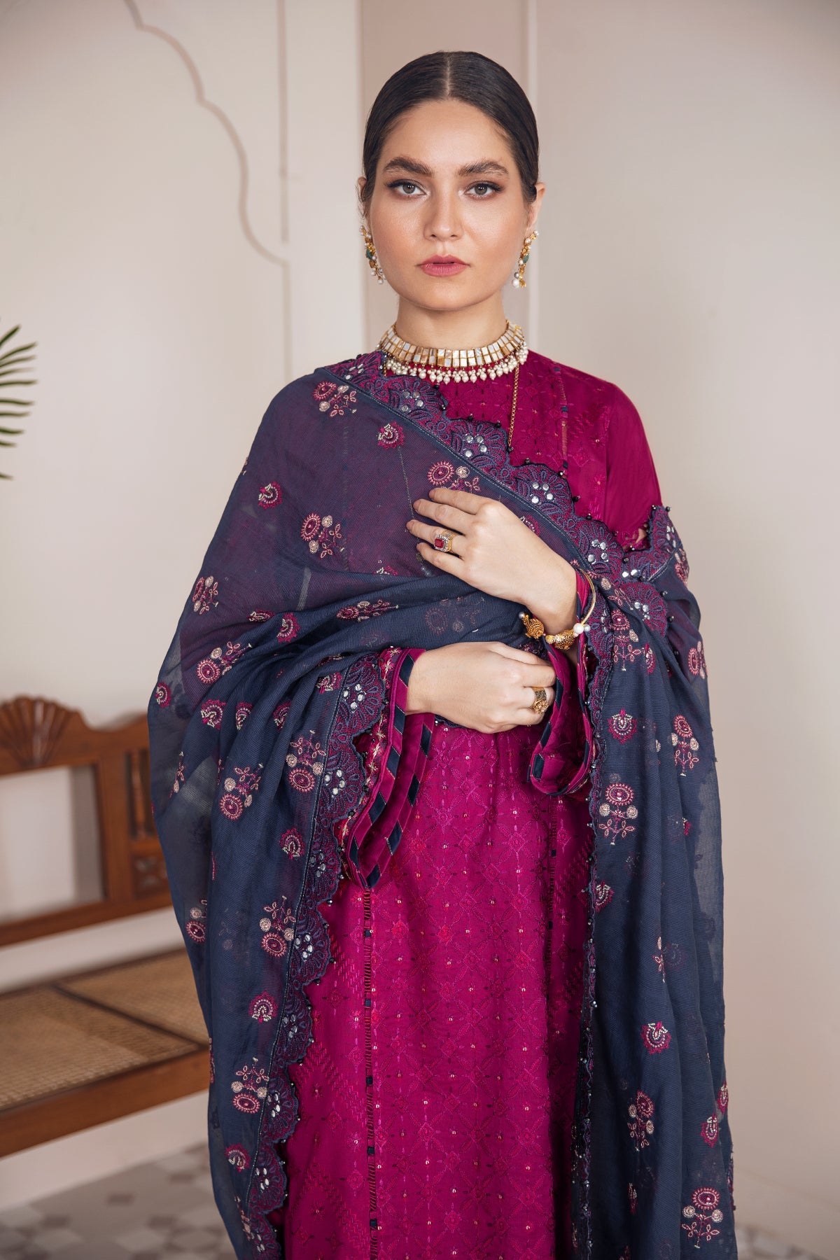EMBROIDERED COTTON DORI DUPATTA (2.65 YARDS)
