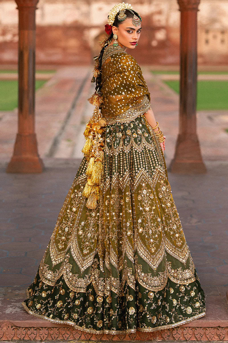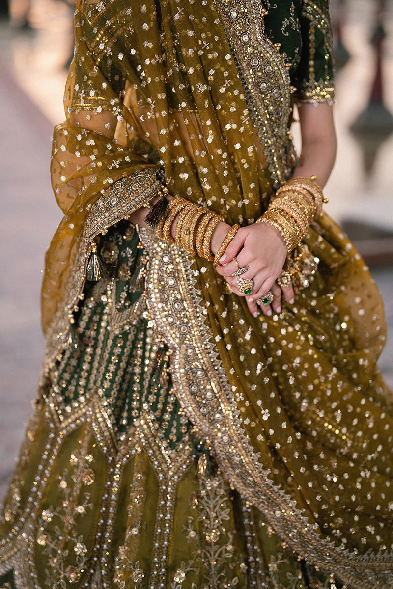Crafted from luxurious Indian silk, this exquisite ensemble showcases intricate patchwork adorned with delicate sequins, pani, and tilla embroidery. The artistry reflects timeless craftsmanship and refined elegance. Paired with a beautifully scalloped border dupatta, this creation exudes regal allure and graceful sophistication — a true statement of opulence and tradition.