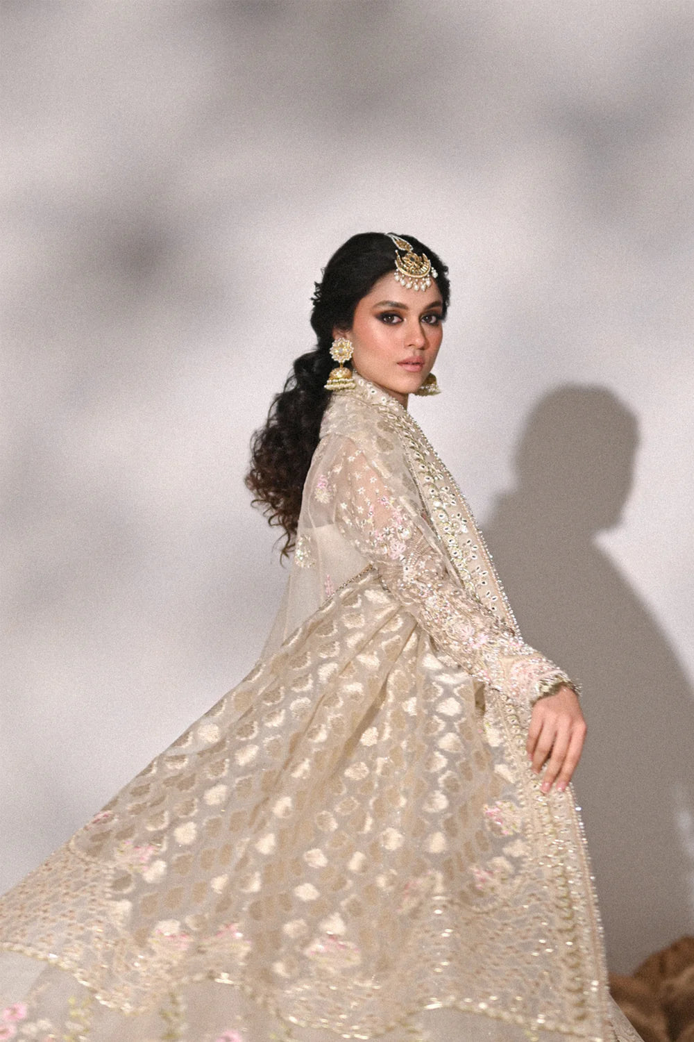 Shirt: Angrakha style with delicate sheesha work, reham, and cutdana detailing on organza.