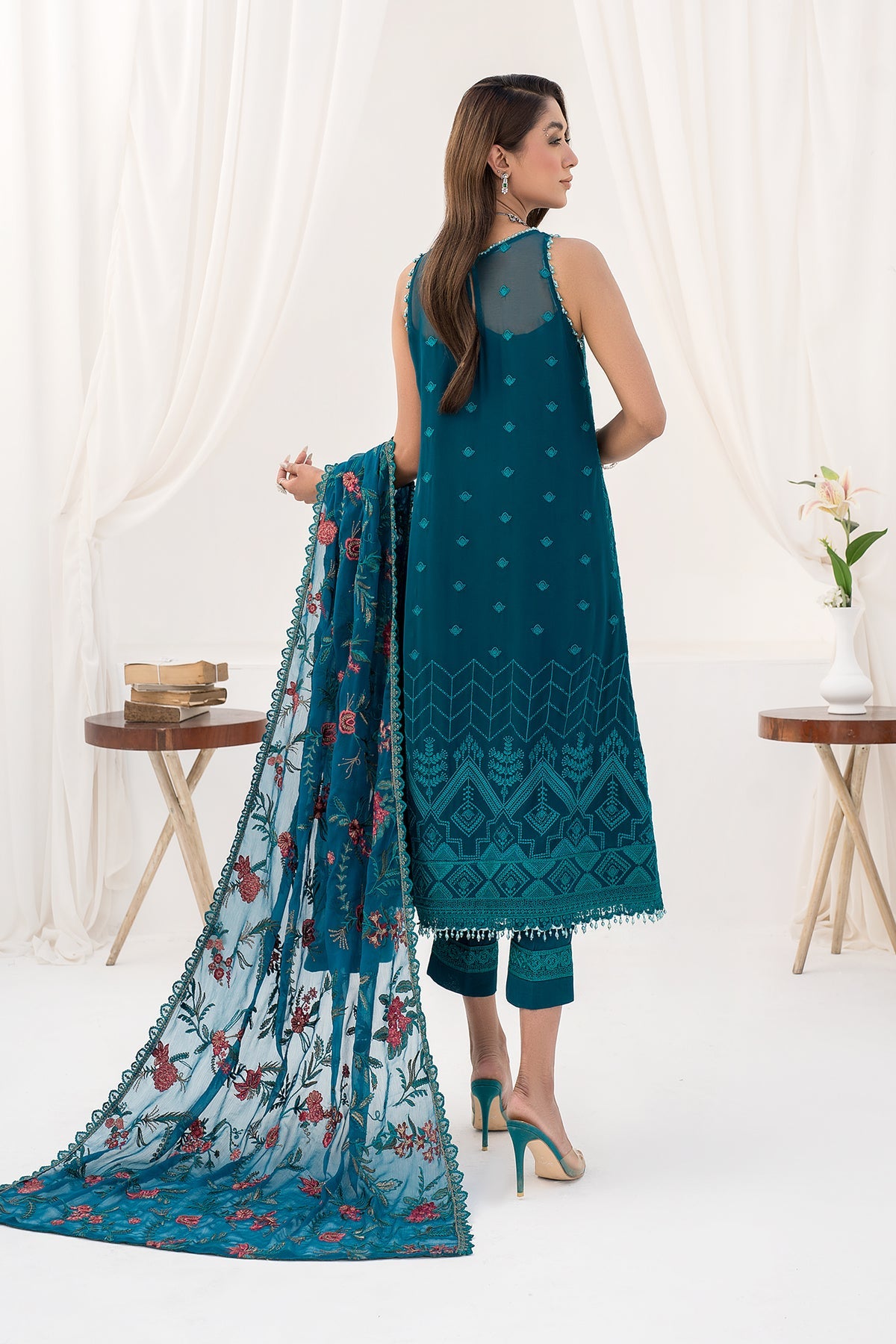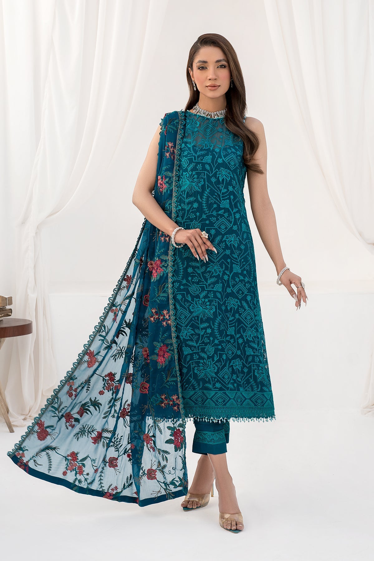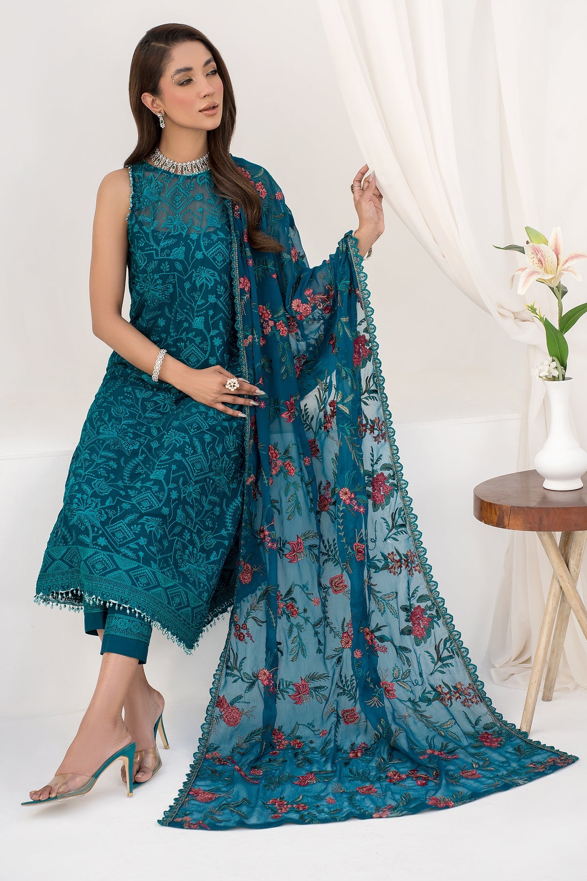 Eye captivating canvas adorned in hued embroidery on a teal canvas, this art piece comes with multi thread shawl crafted intricately to bring life to a subtle base.