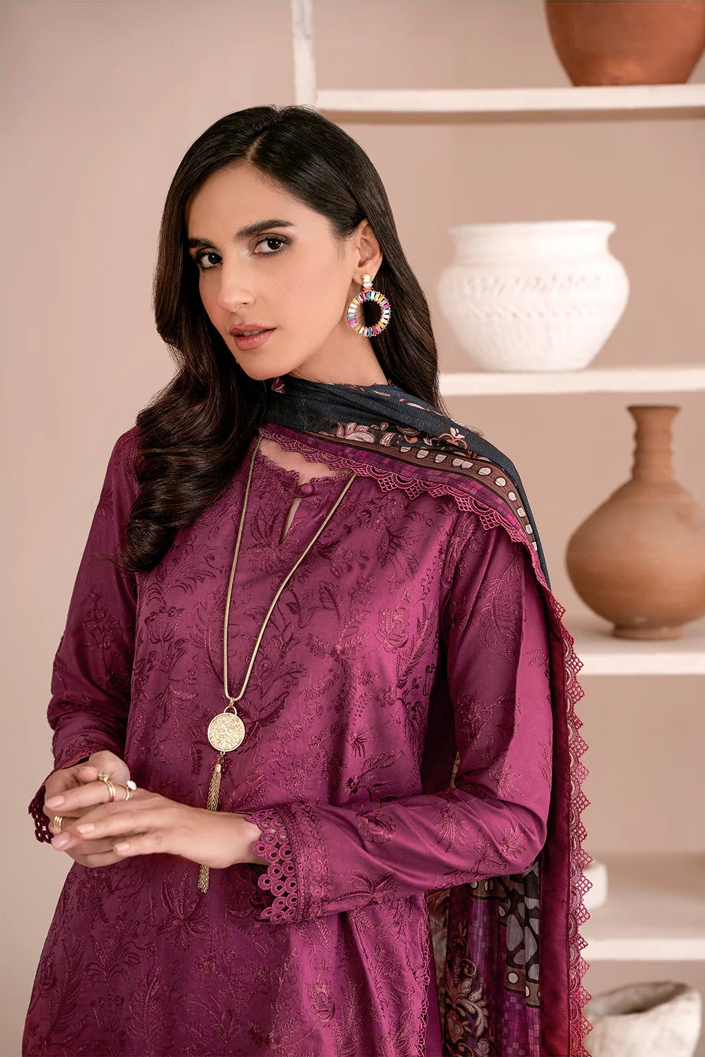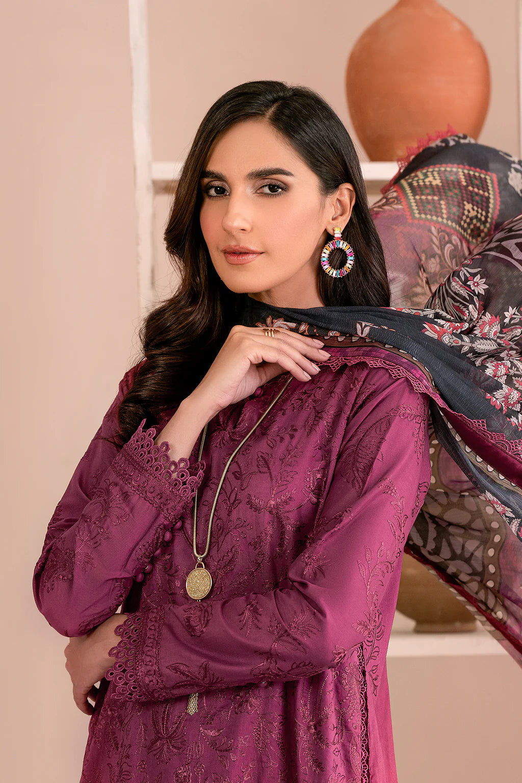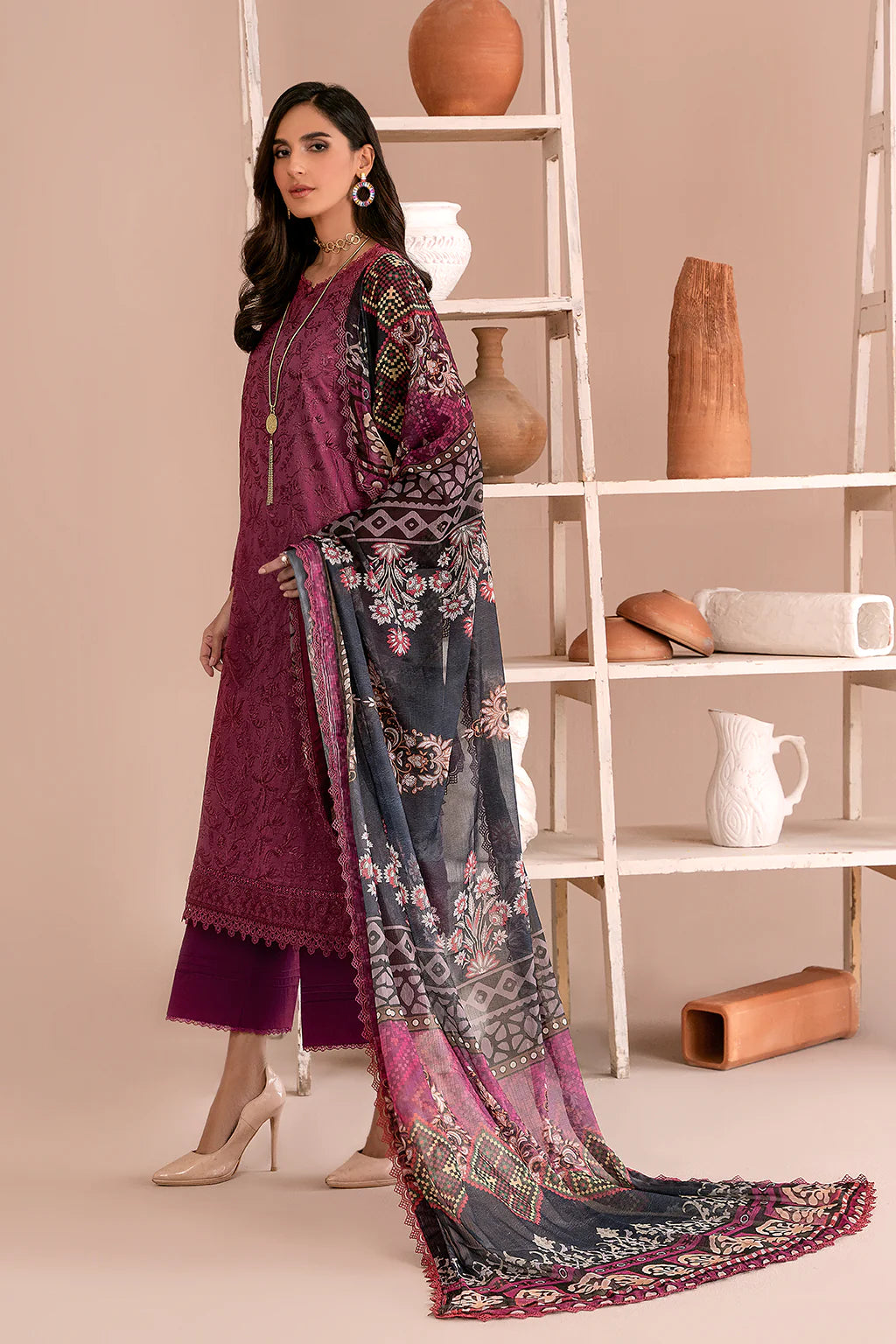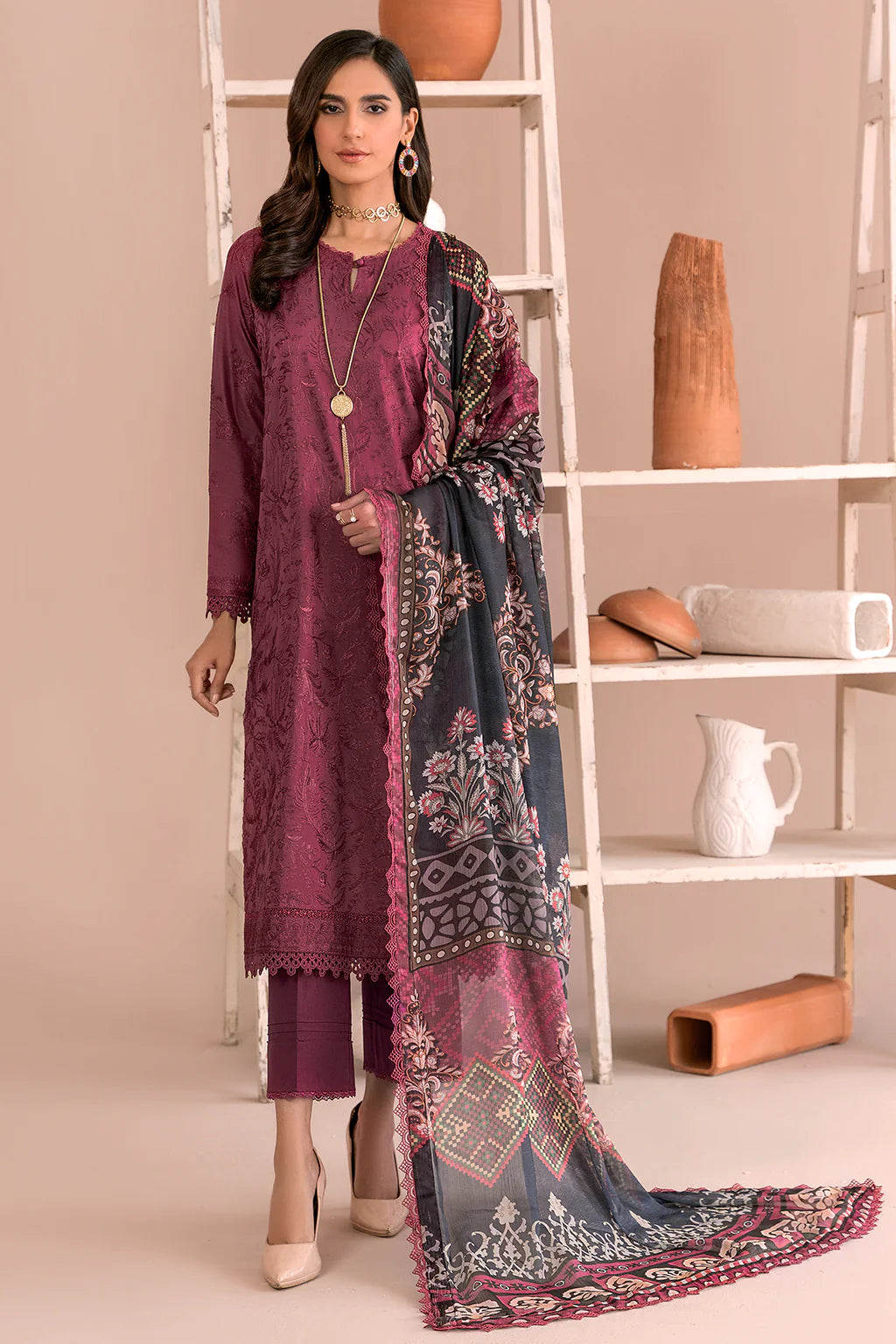 A fine example of artistry on this subtle base featuring a floral symphony. This ensemble is an aesthetically pleasing design paired with a printed chiffon dupatta and tonal trouser. This attire is a best pick for all your celebrations
